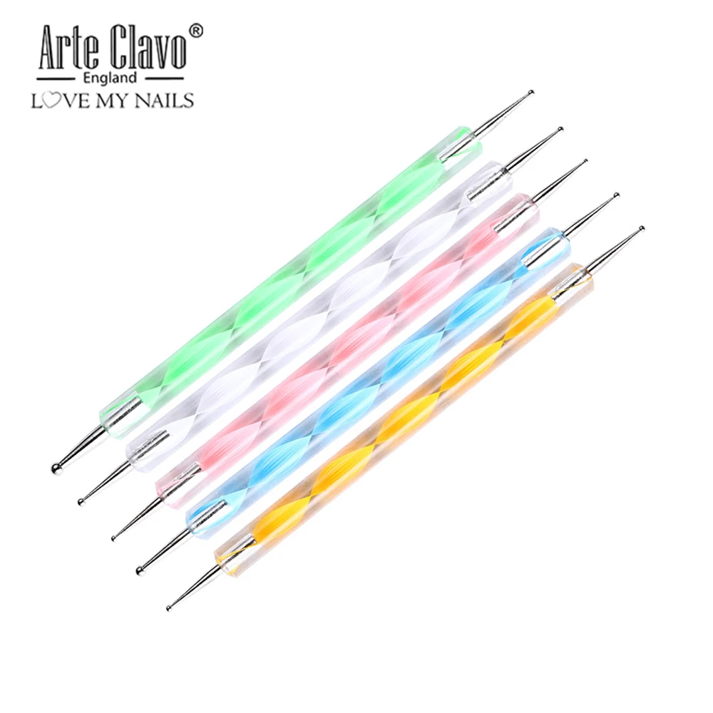 Профессиональная ручка для ногтей Arte Clavo, 5 шт., ручка для дизайна ногтей, двусторонняя точечная ручка, набор для УФ-геля, рисования ногтей, кисть для рисования, инструмент для нанесения страз