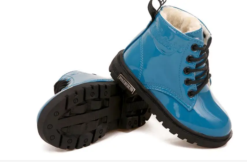 Ботинки детские зимние из искусственной кожи, водонепроницаемая обувь, бархатные, сохраняющие тепло, резиновые, для девочек и мальчиков