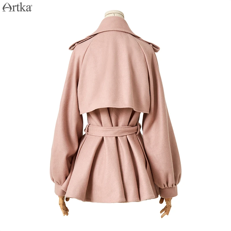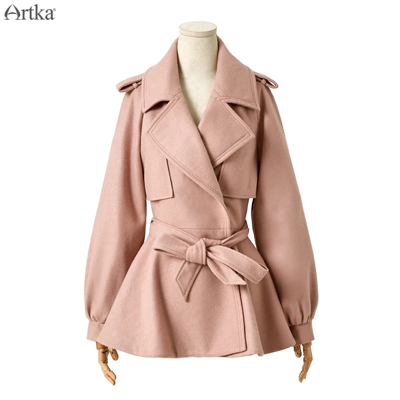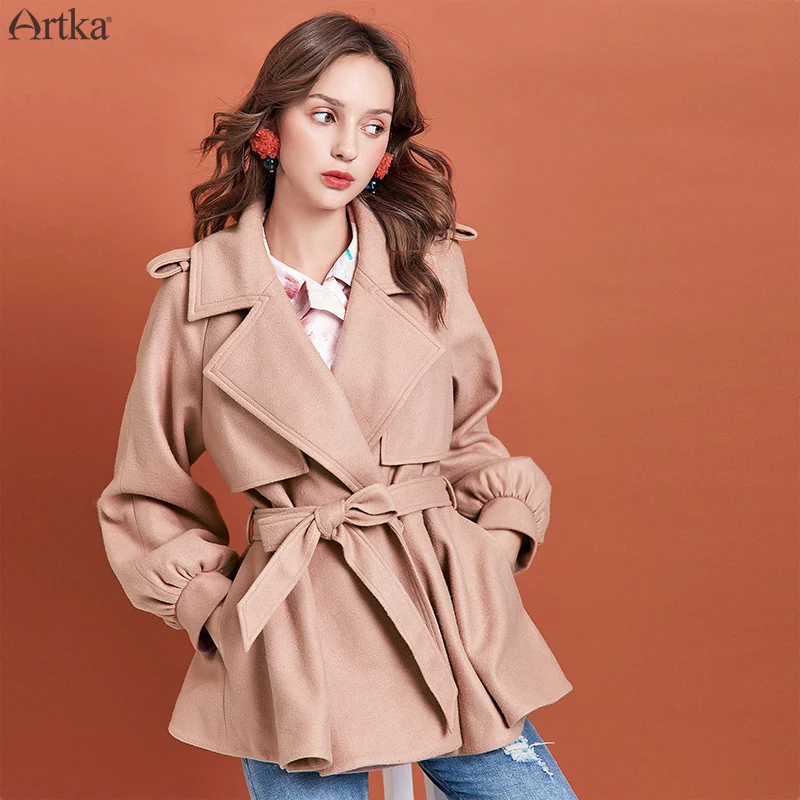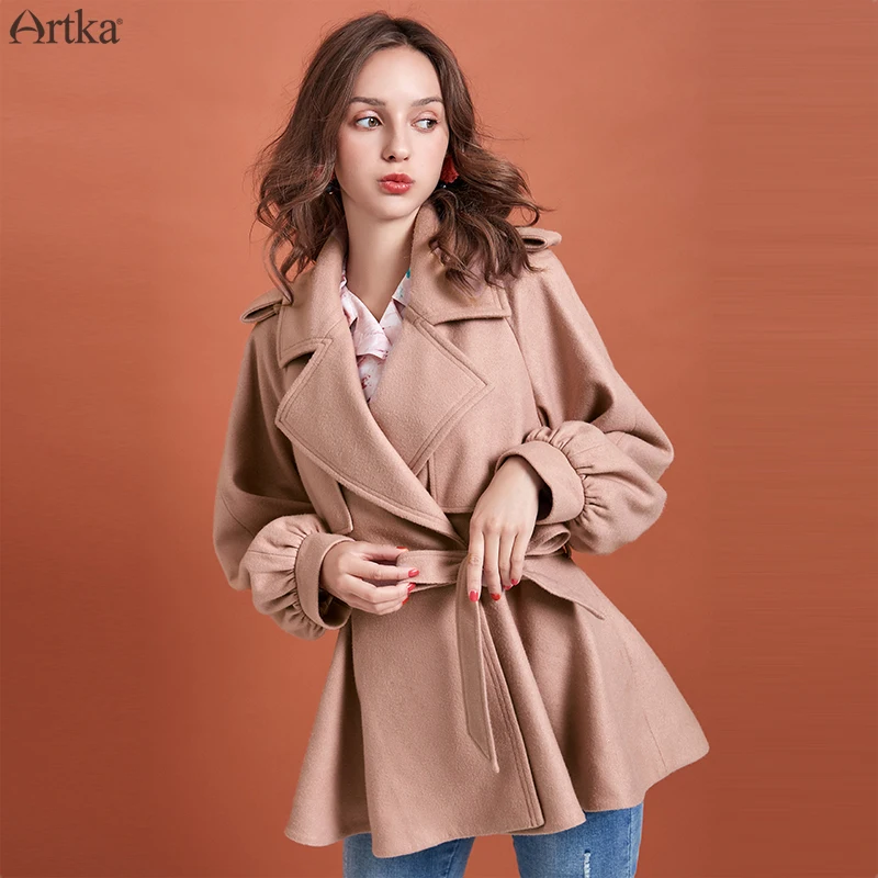 Женское шерстяное пальто ARTKA, винтажная верхняя одежда с рукавами-фонариками и отложным воротником, с поясом, FA10292D, зима 2019