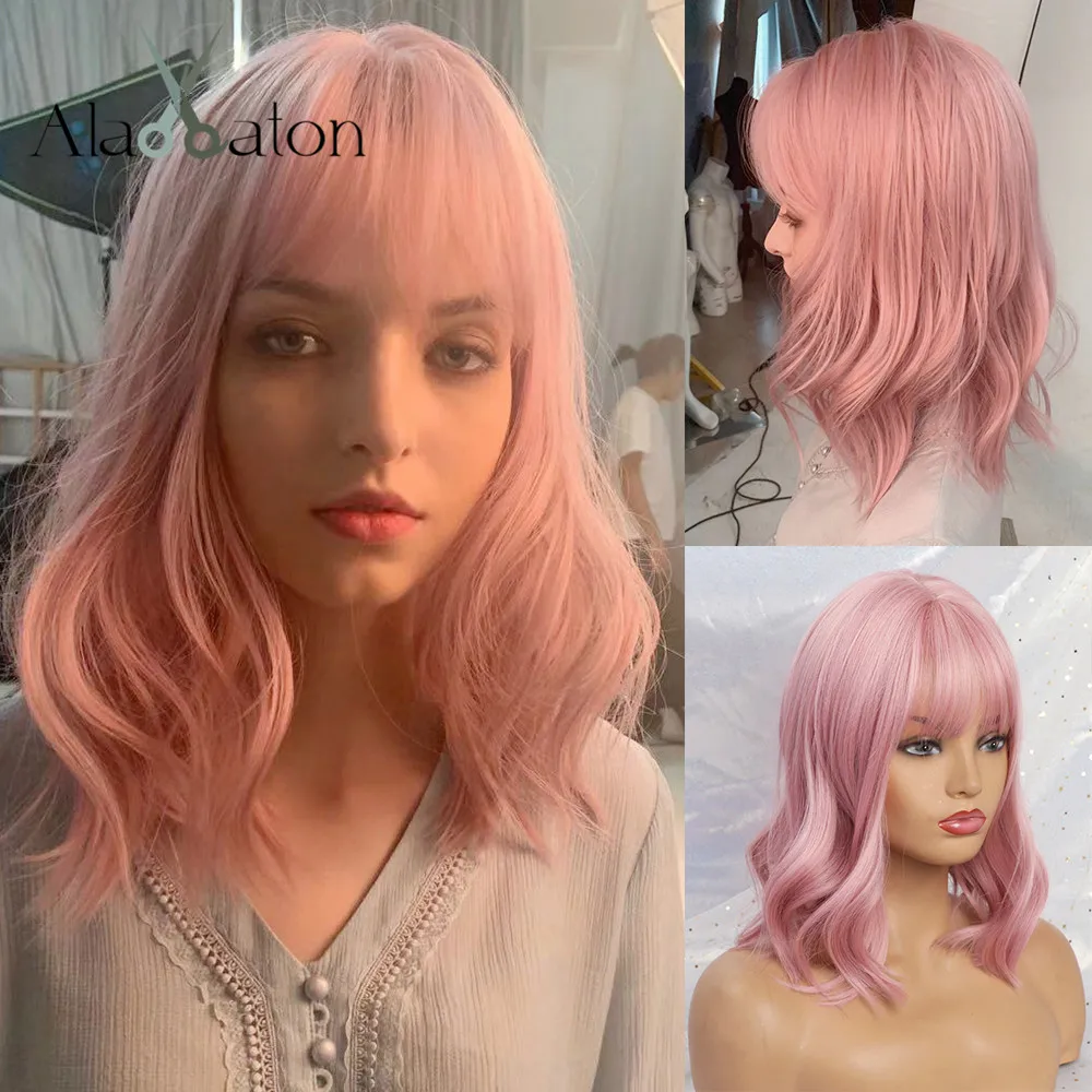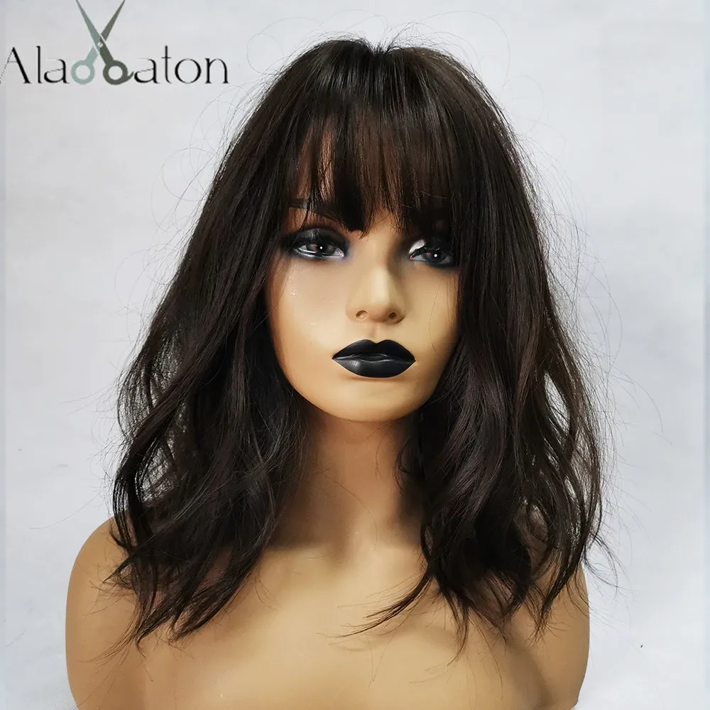 Парики женские из синтетического волокна ALAN EATON, черные и коричневые, с челкой, термостойкие