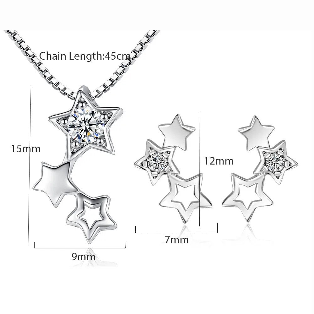 925 серебро циркон Звезда Ожерелье и серьги свадебный комплект ювелирных изделий наборы свадебных ювелирных изделий для женщин подарок