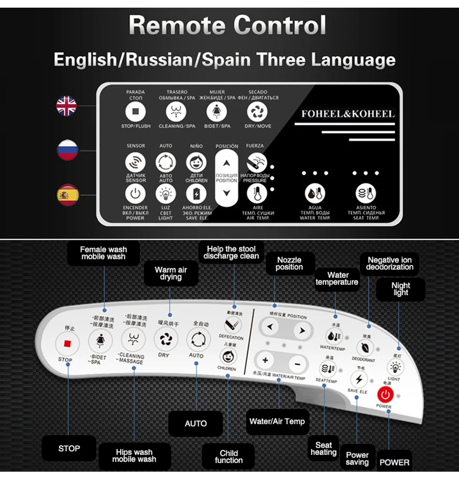 Super cool awesome bidet. Very easy to assemble +instructions in English. All features works properly. Well packed.