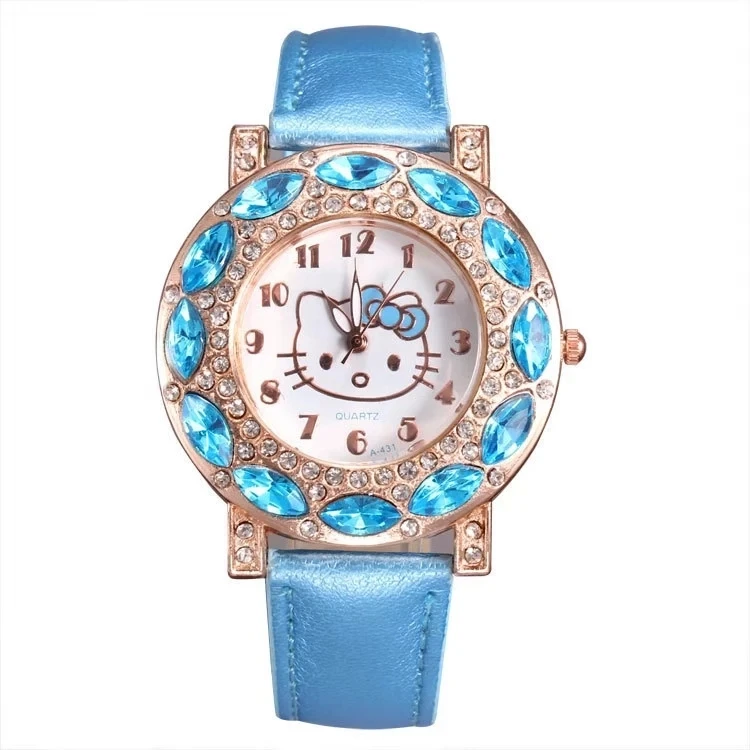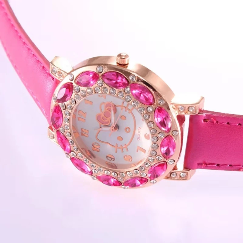 Детские Модные Мультяшные персонализированные женские часы КТ с ремешком в британском стиле с бриллиантами милые студенческие часы для детей