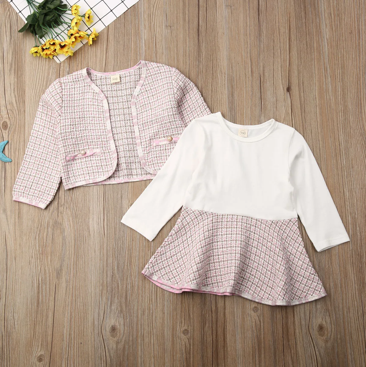 Новое Детское клетчатое пальто и платье-пачка для маленьких девочек...