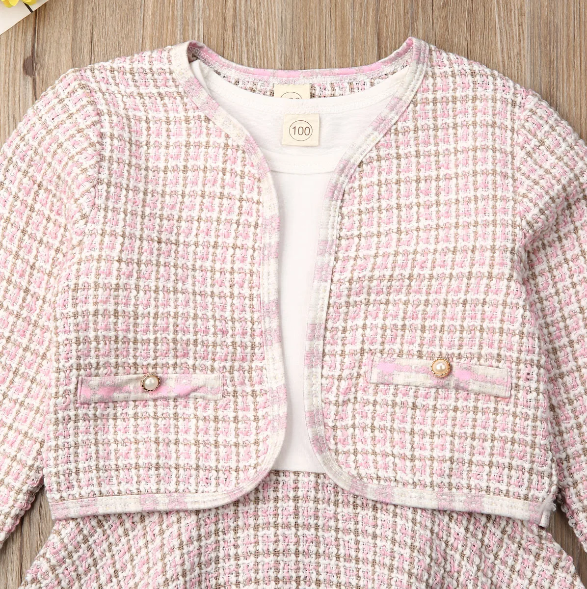 Упаковка включает: 1 клетчатое пальто и 1 платье