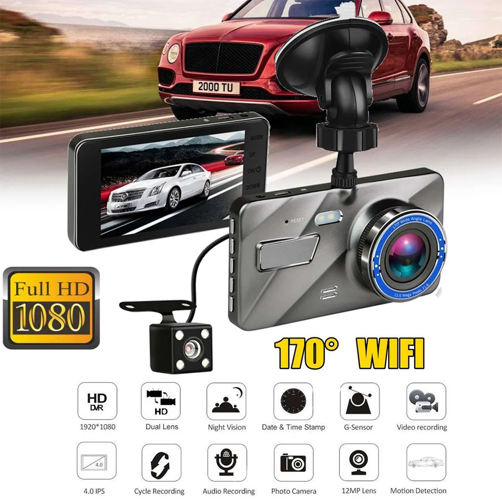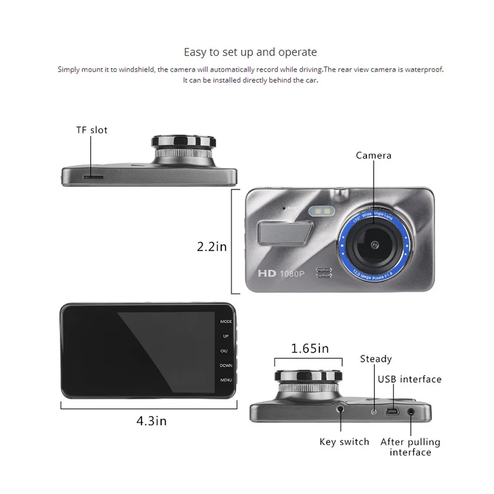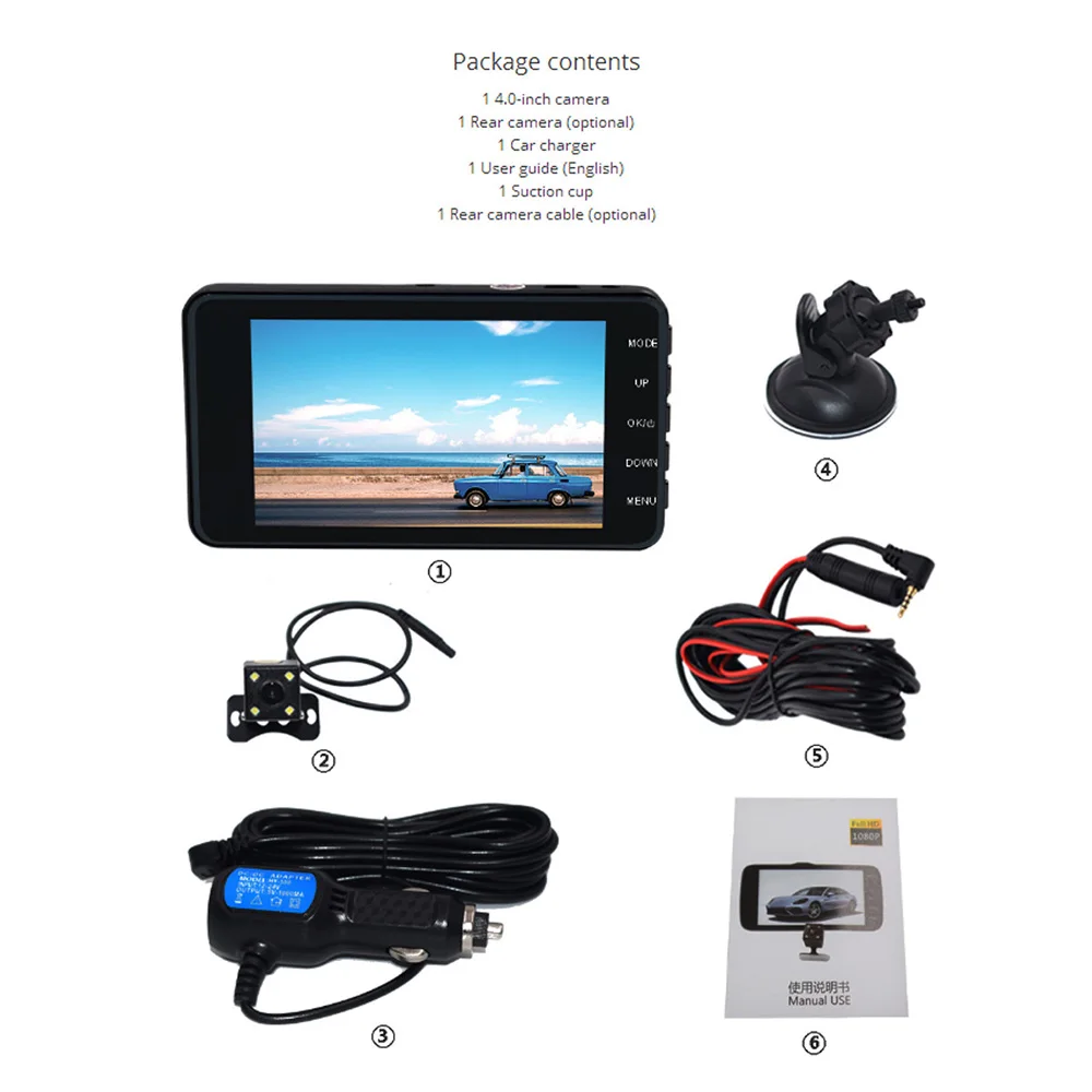 4 дюйма, двойная линза 1080P широкоугольный Автомобильный видеорегистратор с двумя объективами Автомобильный видеорегистратор Поддержка камеры заднего вида ночного видения