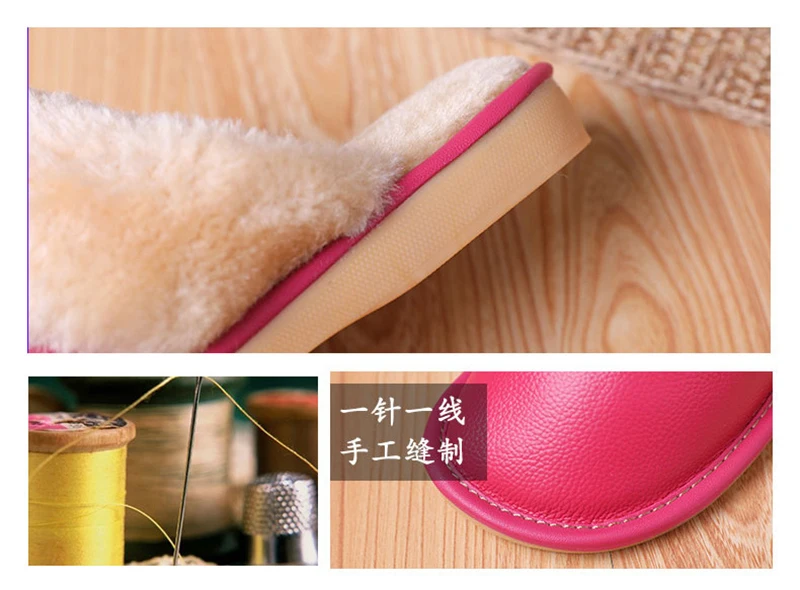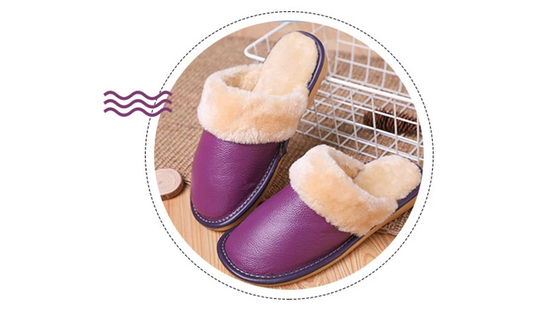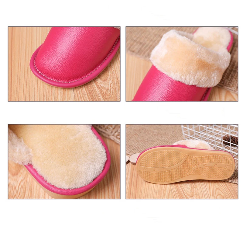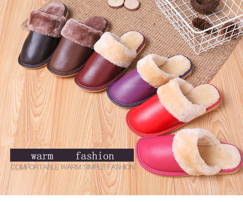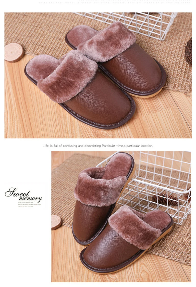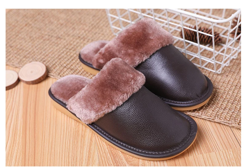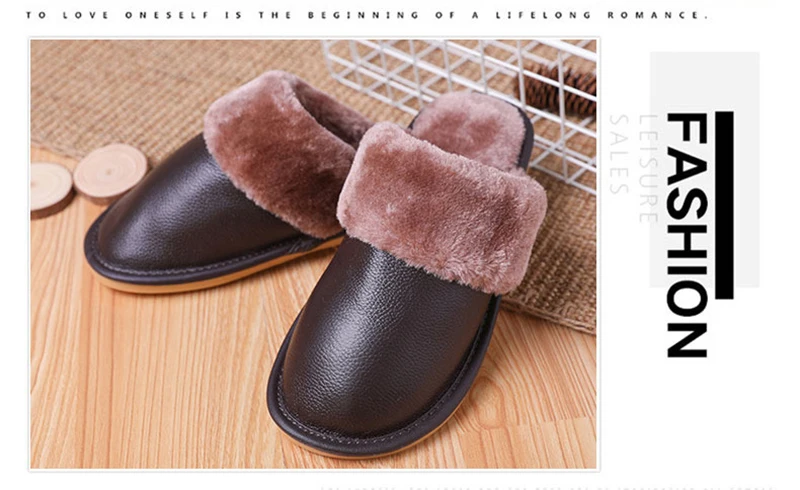 Тапочки мужские кожаные, на платформе, зимние, водонепроницаемые, с искусственным мехом