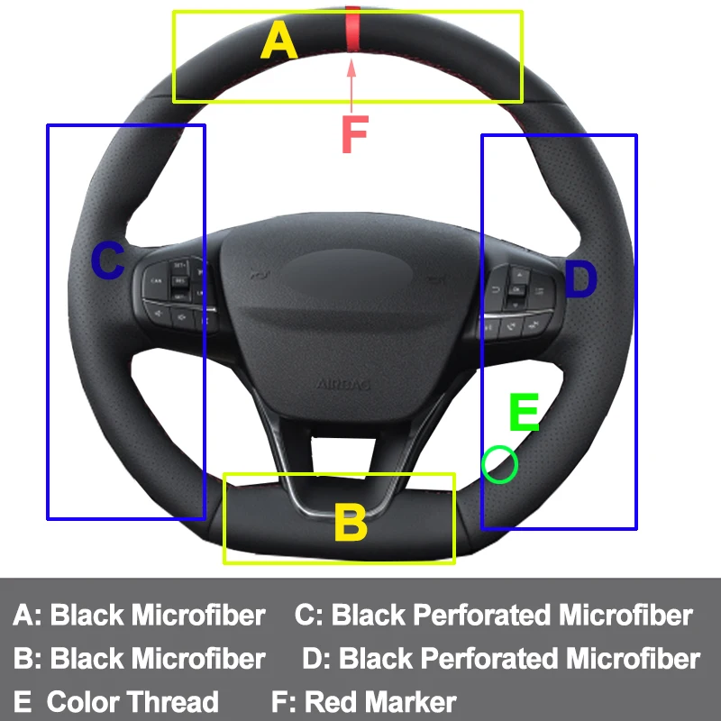 Оплетка на руль, для Ford Focus ST-Line Чехол рулевого колеса автомобиля, 2018, 2019, 2020, Focus ST 2019-2020
