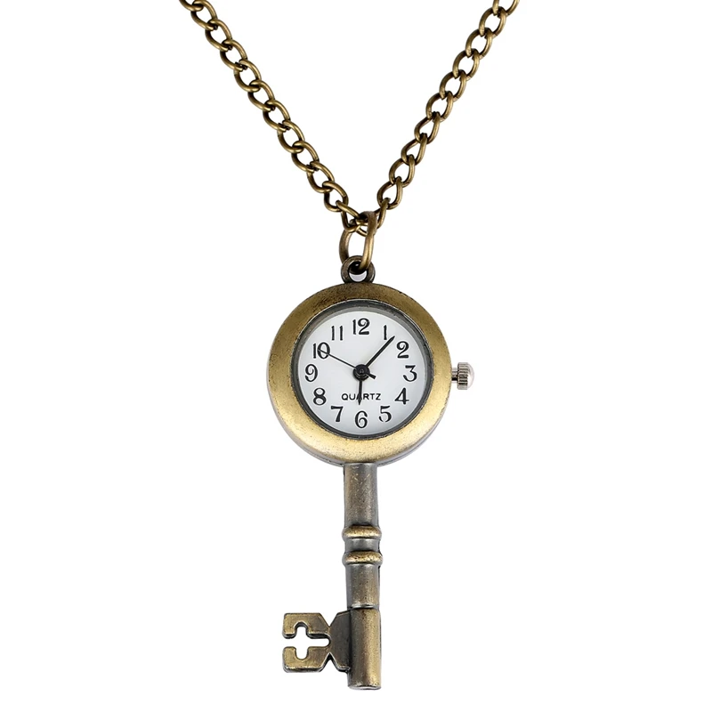 Античный бронзовый милый старинный ключ форма кварцевые карманные часы пряжка ожерелье подарок настенная диаграмма брелок Подвесные часы Коллекционные