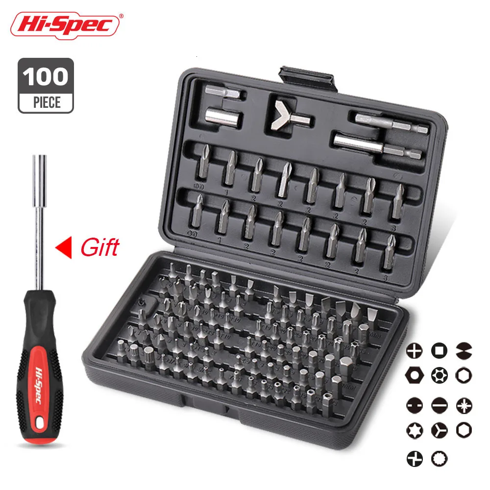 Набор насадок для отверток Hi-Spec, 25 мм, плоские насадки для отверток PH SL с шестигранной отверткой, 100 шт., Набор насадок для отверток Torx с держателем в чехле