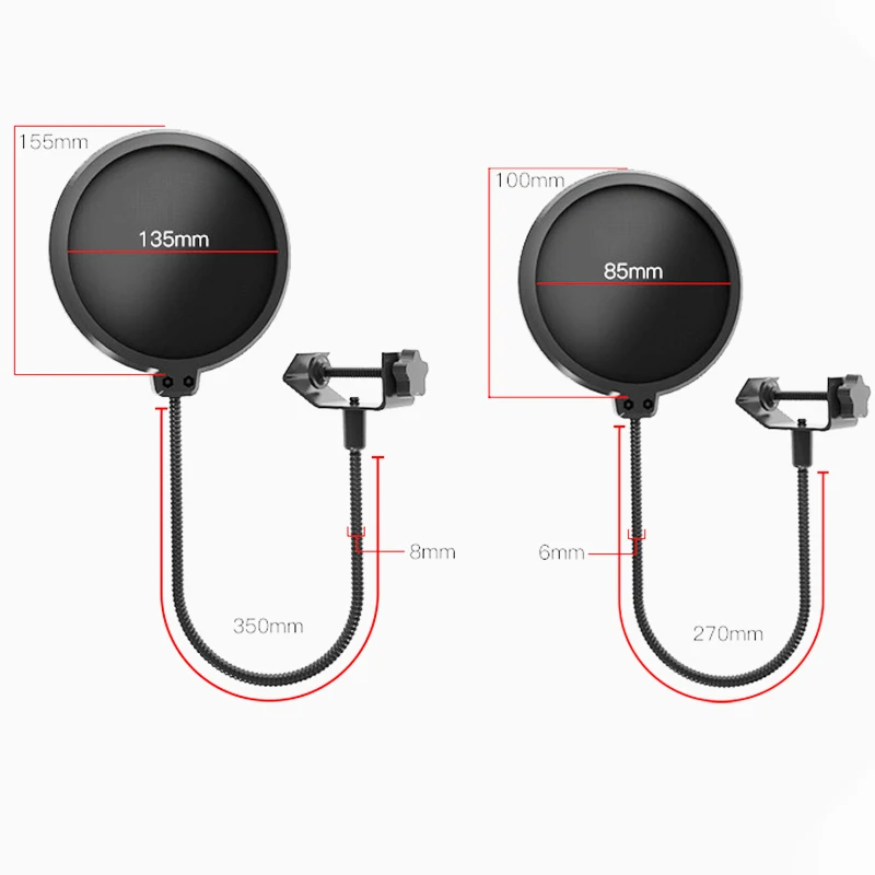 Двухслойный поп-фильтр для студийного микрофона 100 мм, гибкая Ветр...