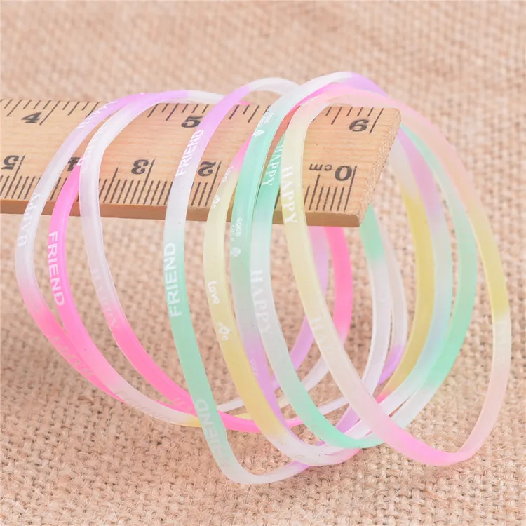 10 шт., детский светящийся Силиконовый браслет с буквами карамельны...