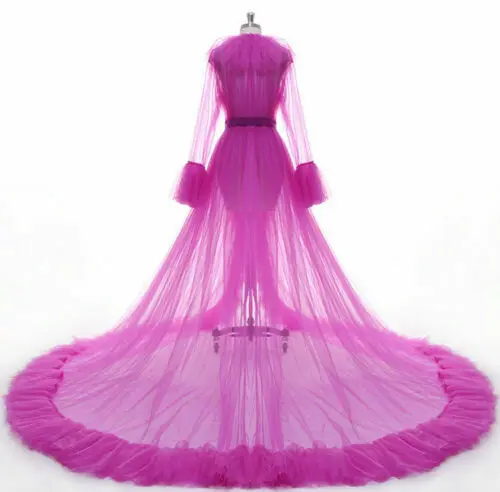Женское кружевное нижнее белье, прозрачный тюлевый прозрачный длинный халат макси с V-образным вырезом и многослойными оборками, платья для сна