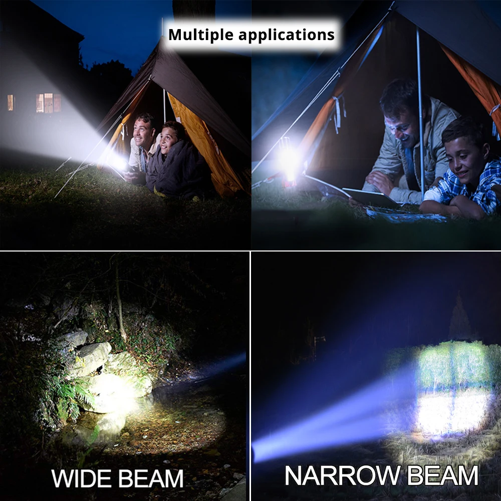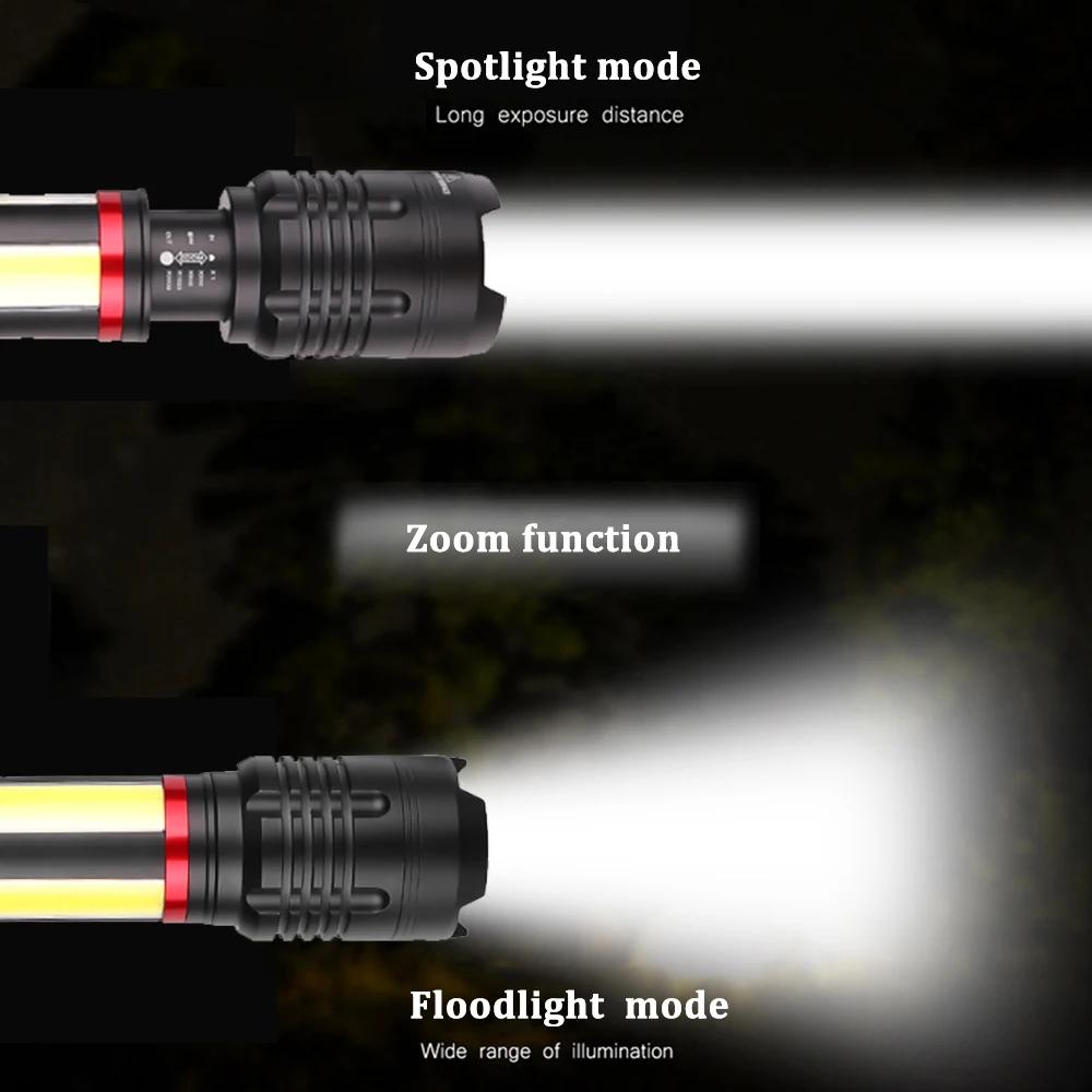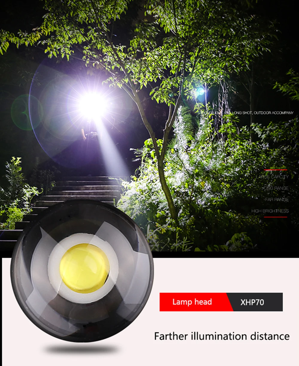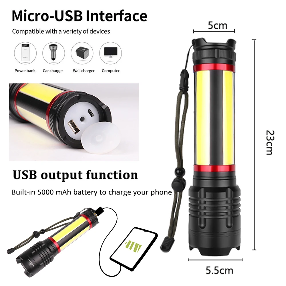 Новейший дизайн, супер яркий XHP70.2 ламповый бисер COB для освещения различных ситуаций, а также с функциями входного и выходного сигнала USB, является хорошим партнером для вашего ночного путешествия, кемпинга