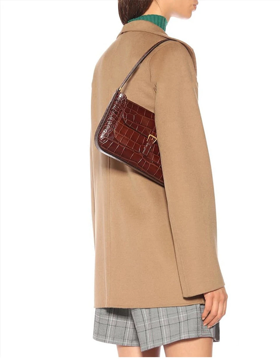 Сумка-багет женская маленькая, элегантная сумочка на плечо, однотонная ретро-сумка из искусственной кожи, дизайнерский кошелек с узором авокадо под крокодиловую кожу