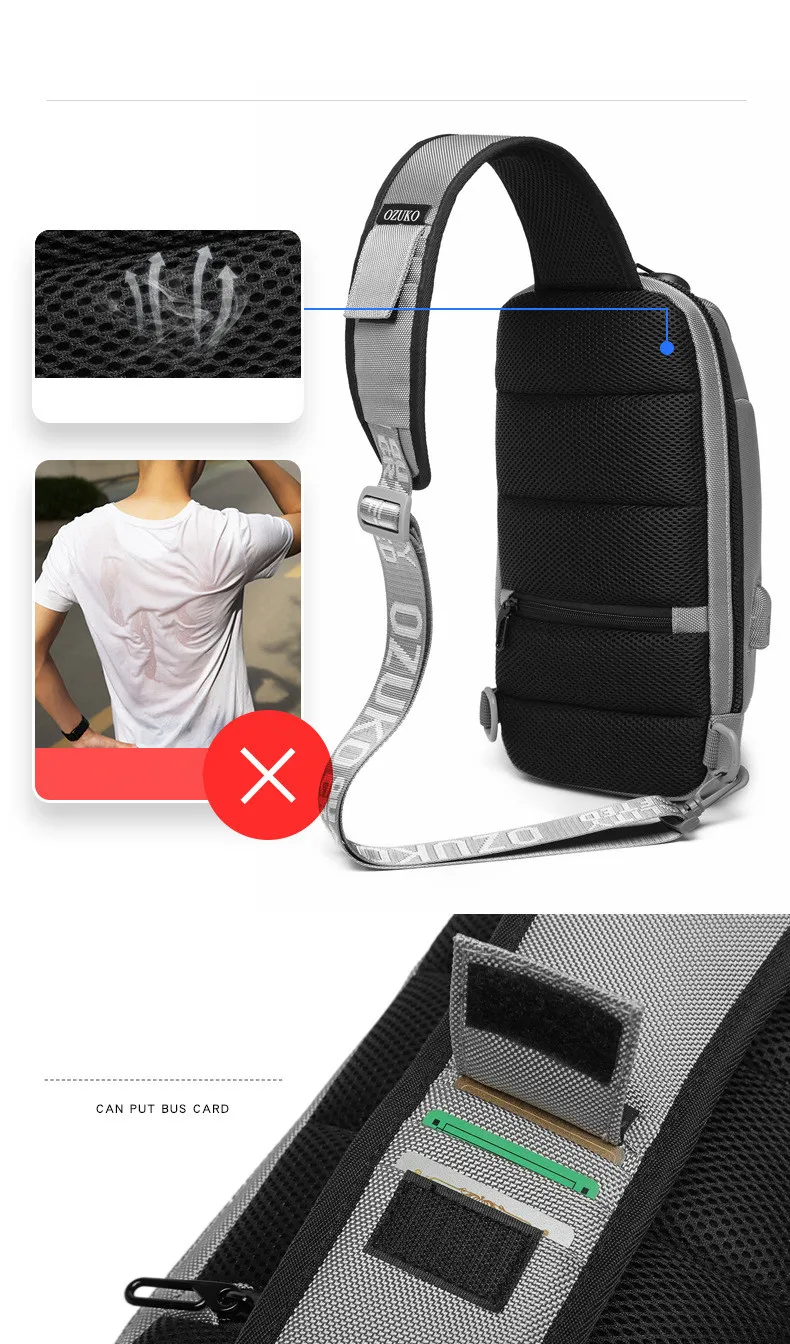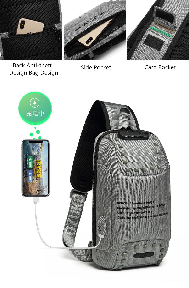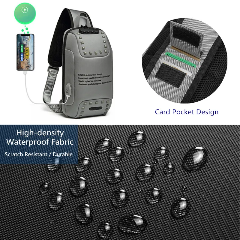 Item Name1OZUKO Waterproof Chest Bag Anti Theft Lock Design