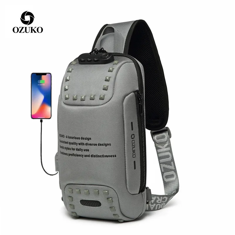 Нагрудная сумка OZUKO для мужчин, дизайнерская Водонепроницаемая Сумочка через плечо с защитой от кражи и замком, дорожная слинг-сумка для iPad 9,7 дюйма