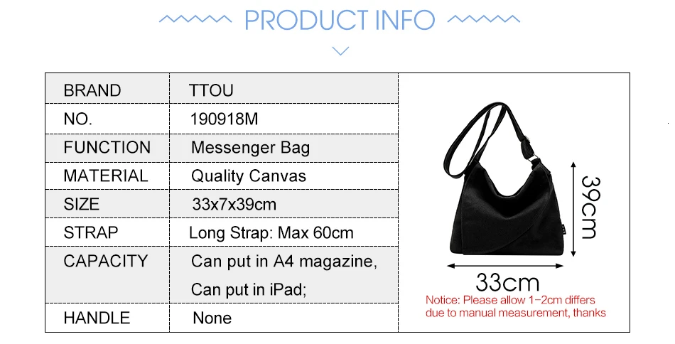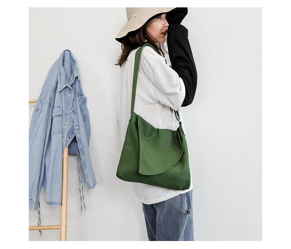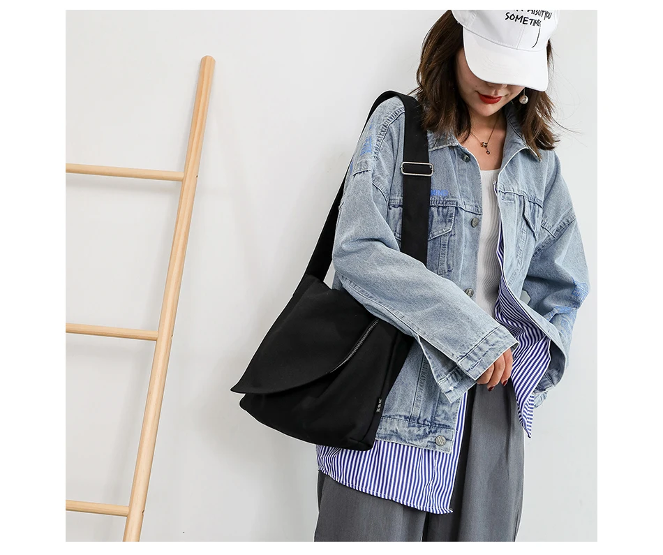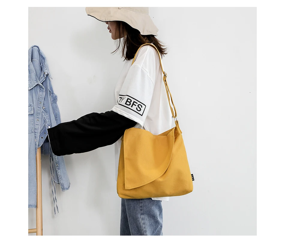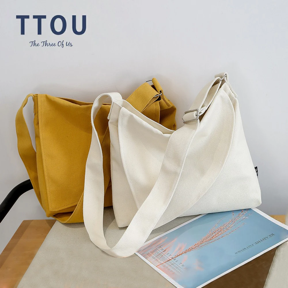 Женская холщовая сумка-мессенджер TTOU, однотонная Повседневная сумка через плечо в японском стиле для девочек-подростков
