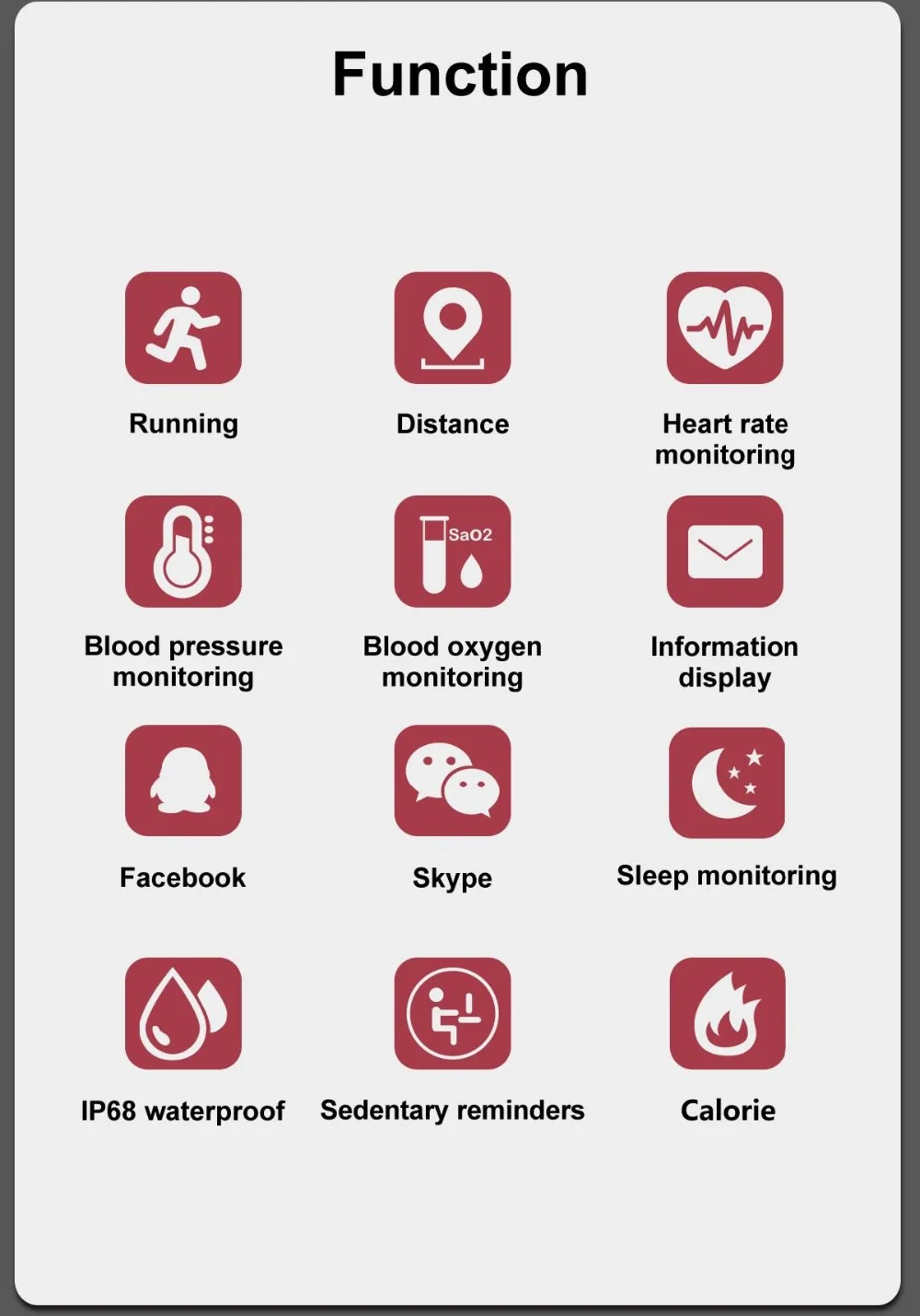 Special FunctionSleep Monitoring, Pedometer, Call Reminder