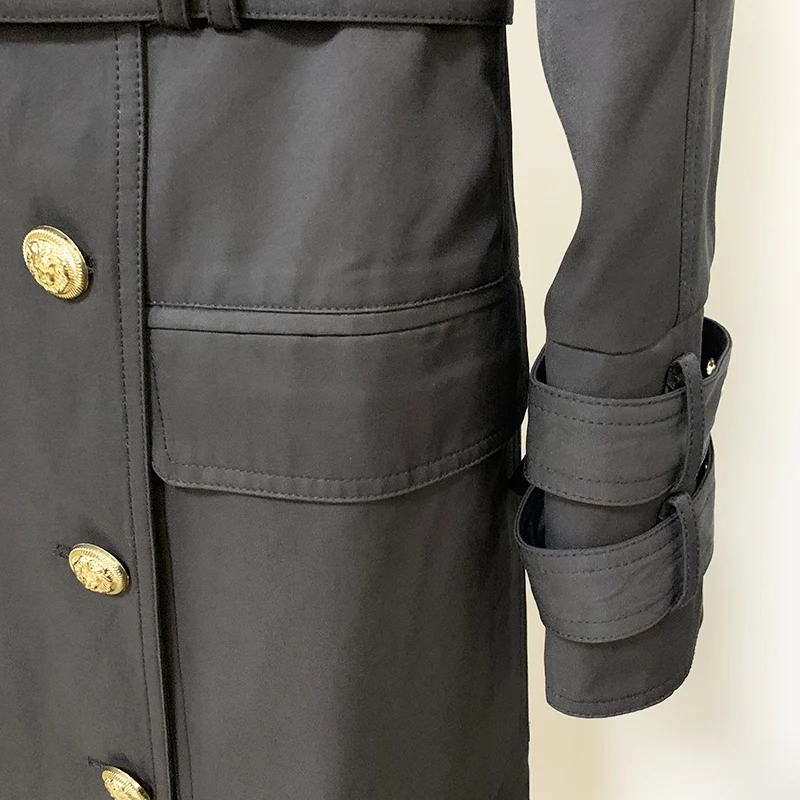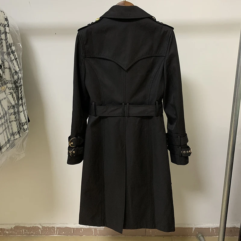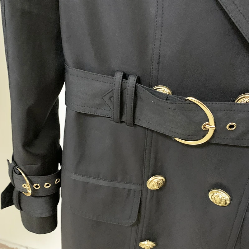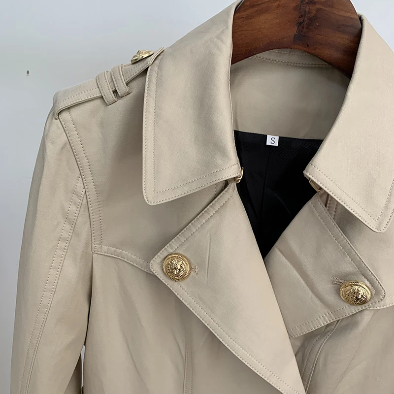 Женский двубортный тренч на пуговицах, облегающий двубортный тренчкот с металлическими пуговицами в виде льва, Осень-зима 2022