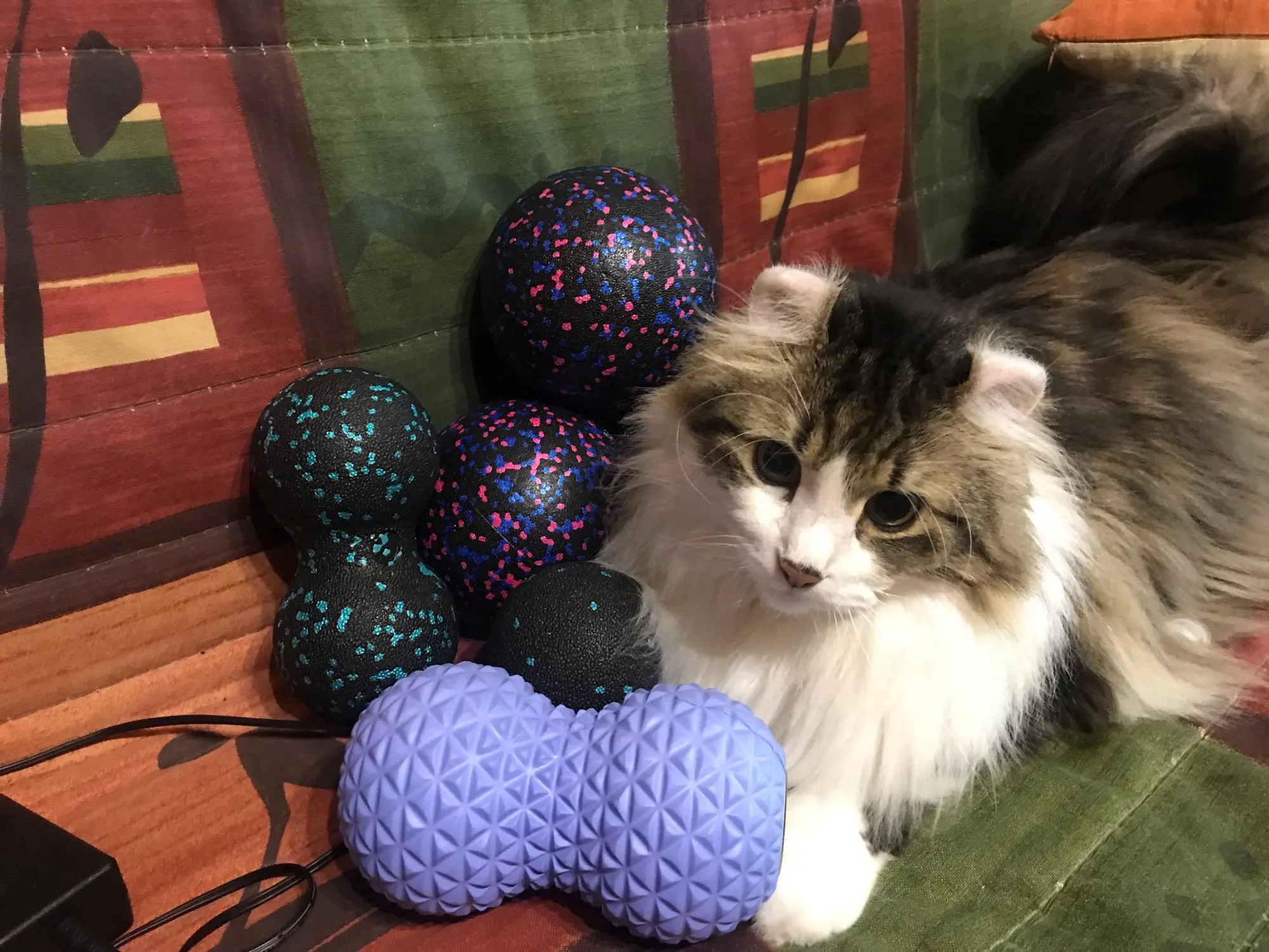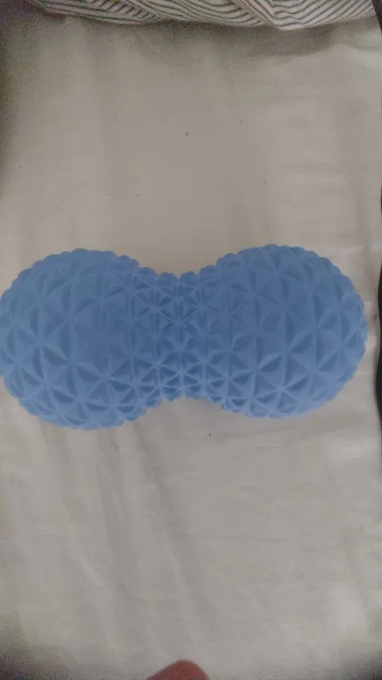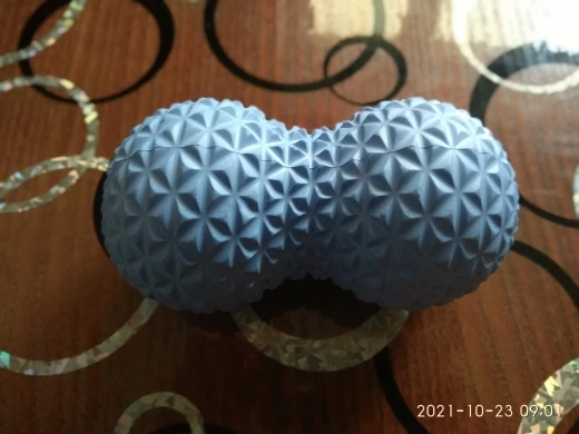 Хороший массажер: легкий, внутри твердый, снаружи резиновый. Не знаю, как насчет занятий на полу, потому что массажер достаточно большого размера, но у стены хорошо массажировать спину. Доставка быстрая