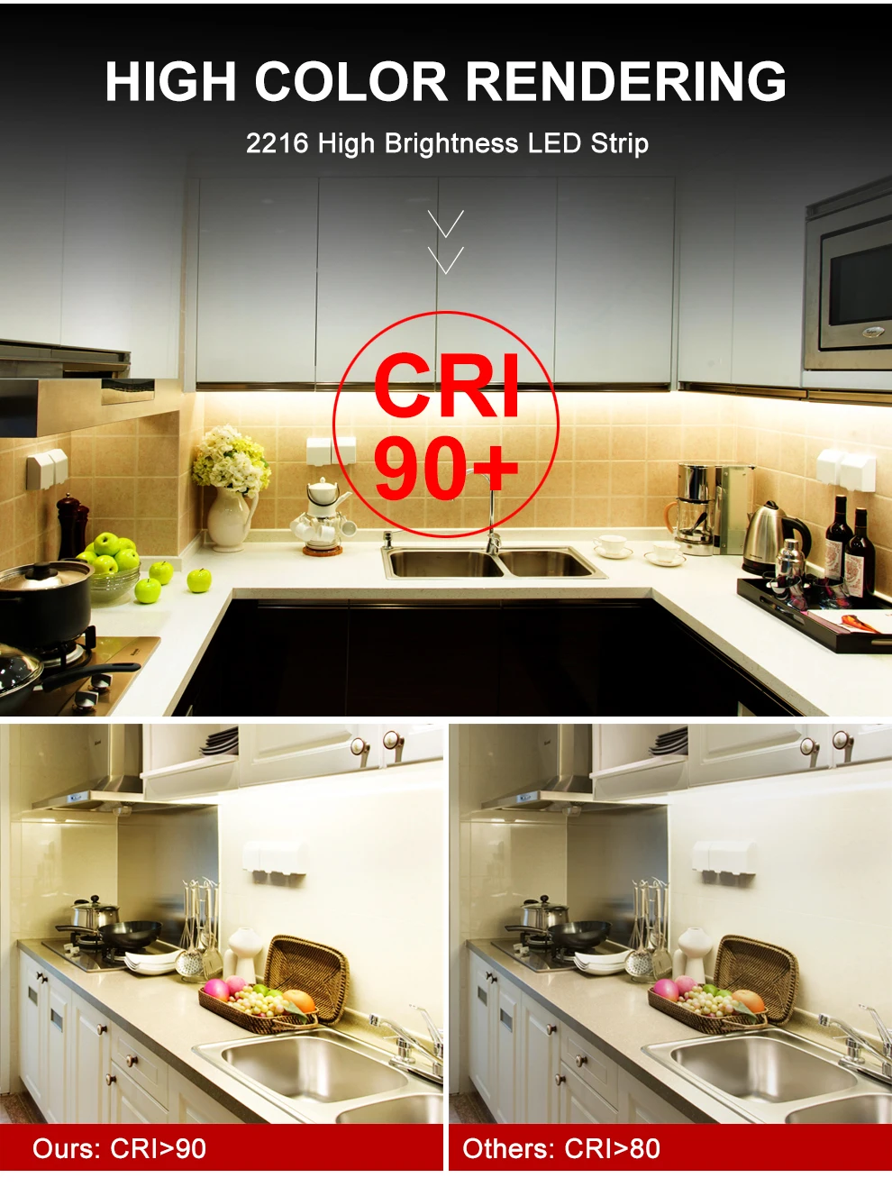 Светодиодная лента высокой яркости, гибкая светильник ная лента SMD 2216 CRI 90, 12 В, 120 светодиодов на метр, 24 В, 300 светодиодов на метр, 3000K, 4000K, 6000K, 5 млот