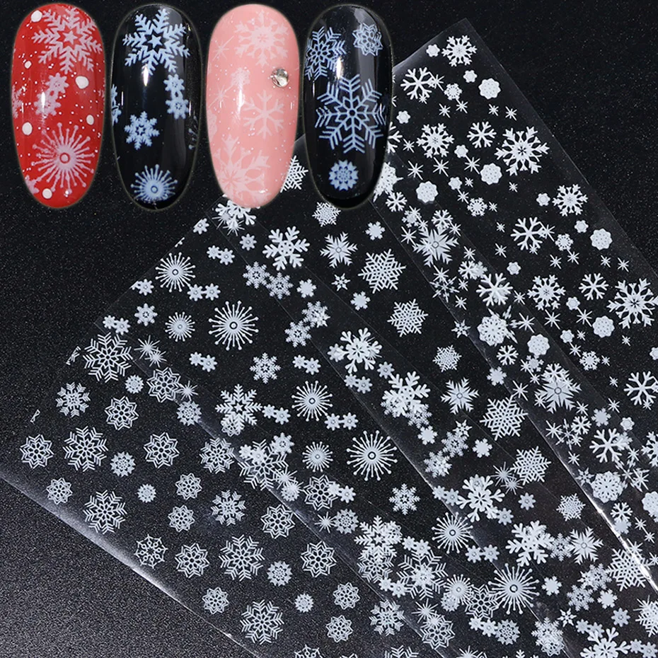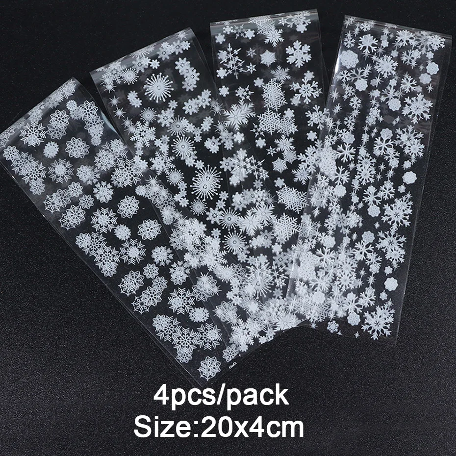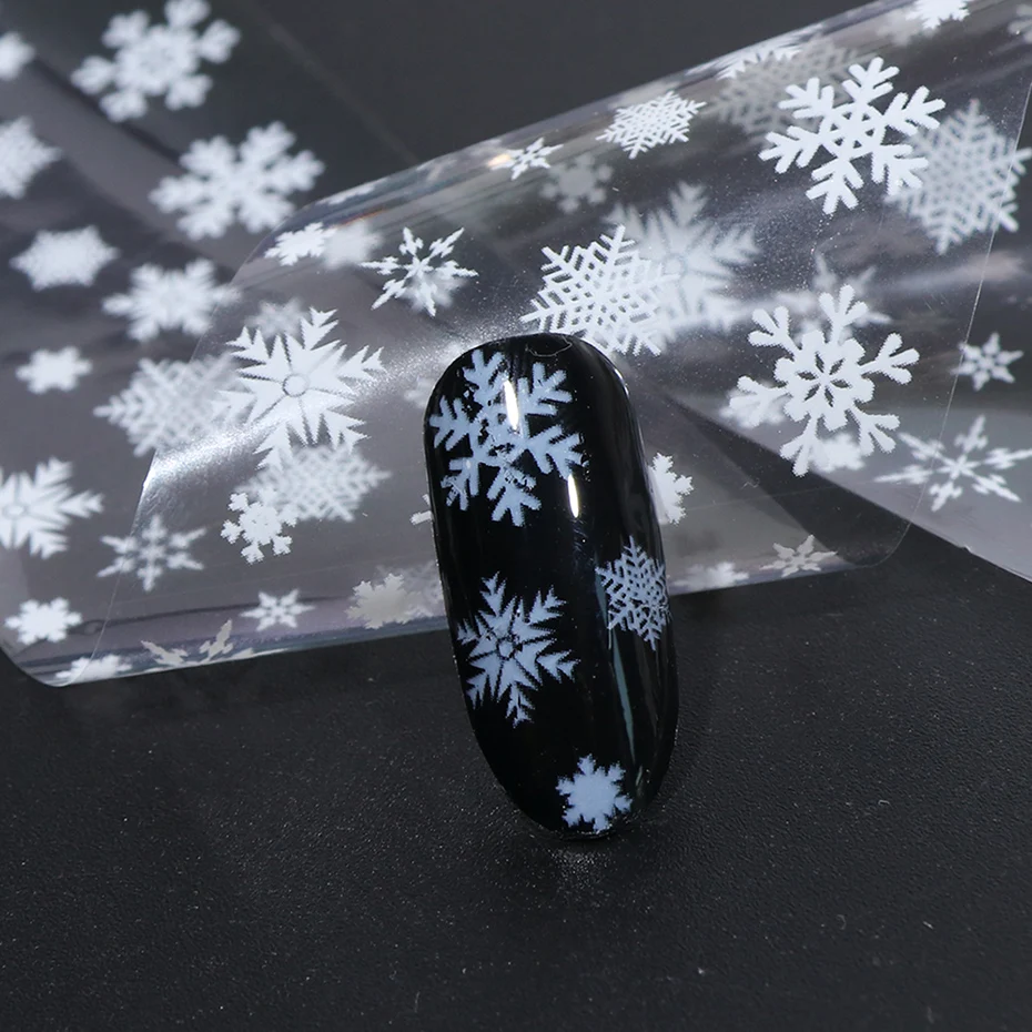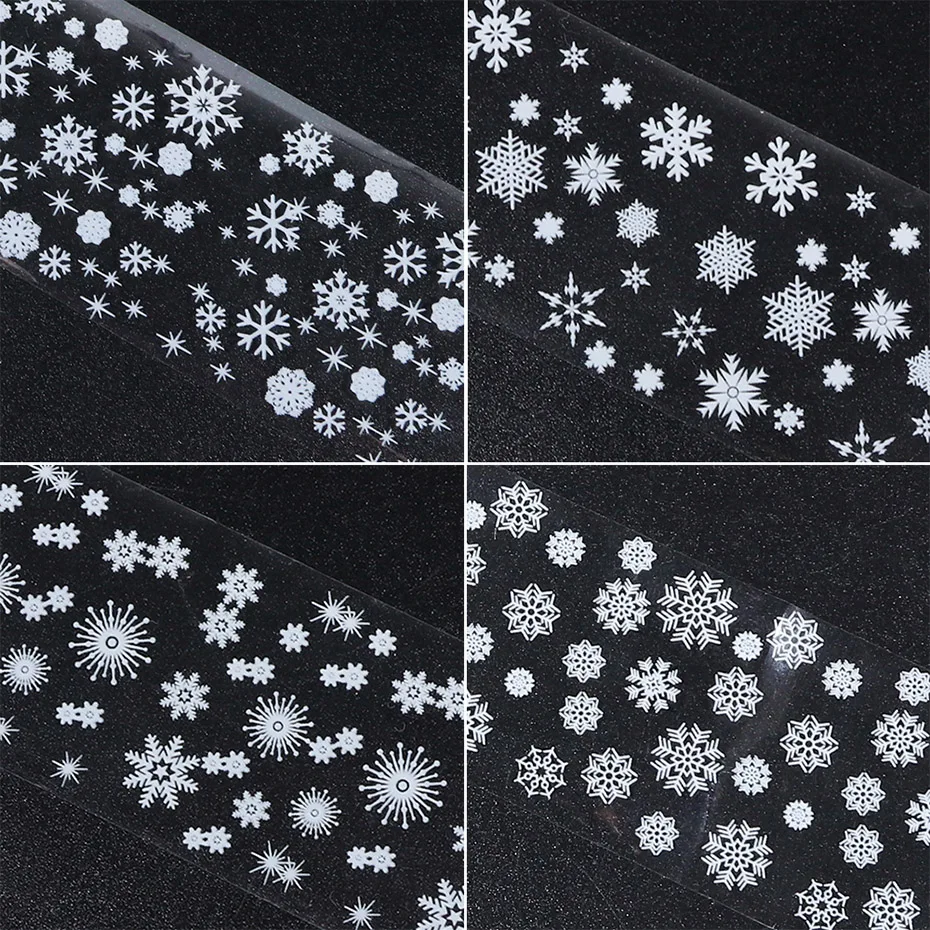 4 шт., белые снежинки, Рождественская Фольга для ногтей, переводные наклейки, зимние рождественские Цветочные хлопья, слайдер для маникюра, украшения для ногтей JI750