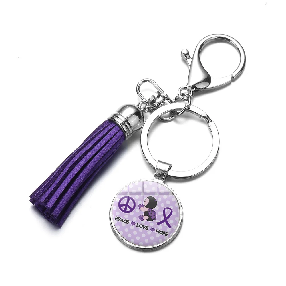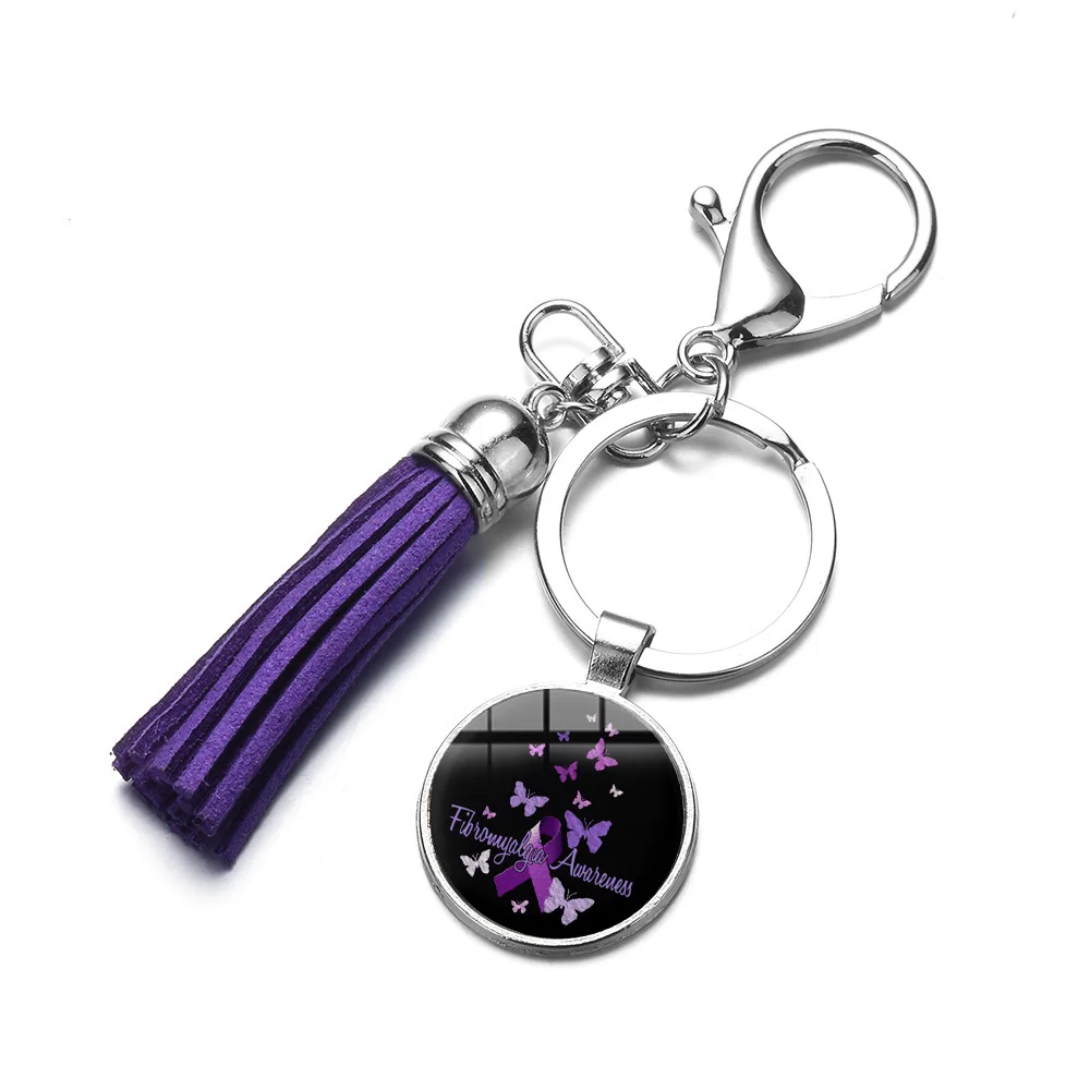 SONGDA фибромиалгия Keyhain знание потребителей о цепочка для ключей с сиреневой бабочкой на крышке лента надежды печатных стеклянный купол для ключа с кольцом-держателем