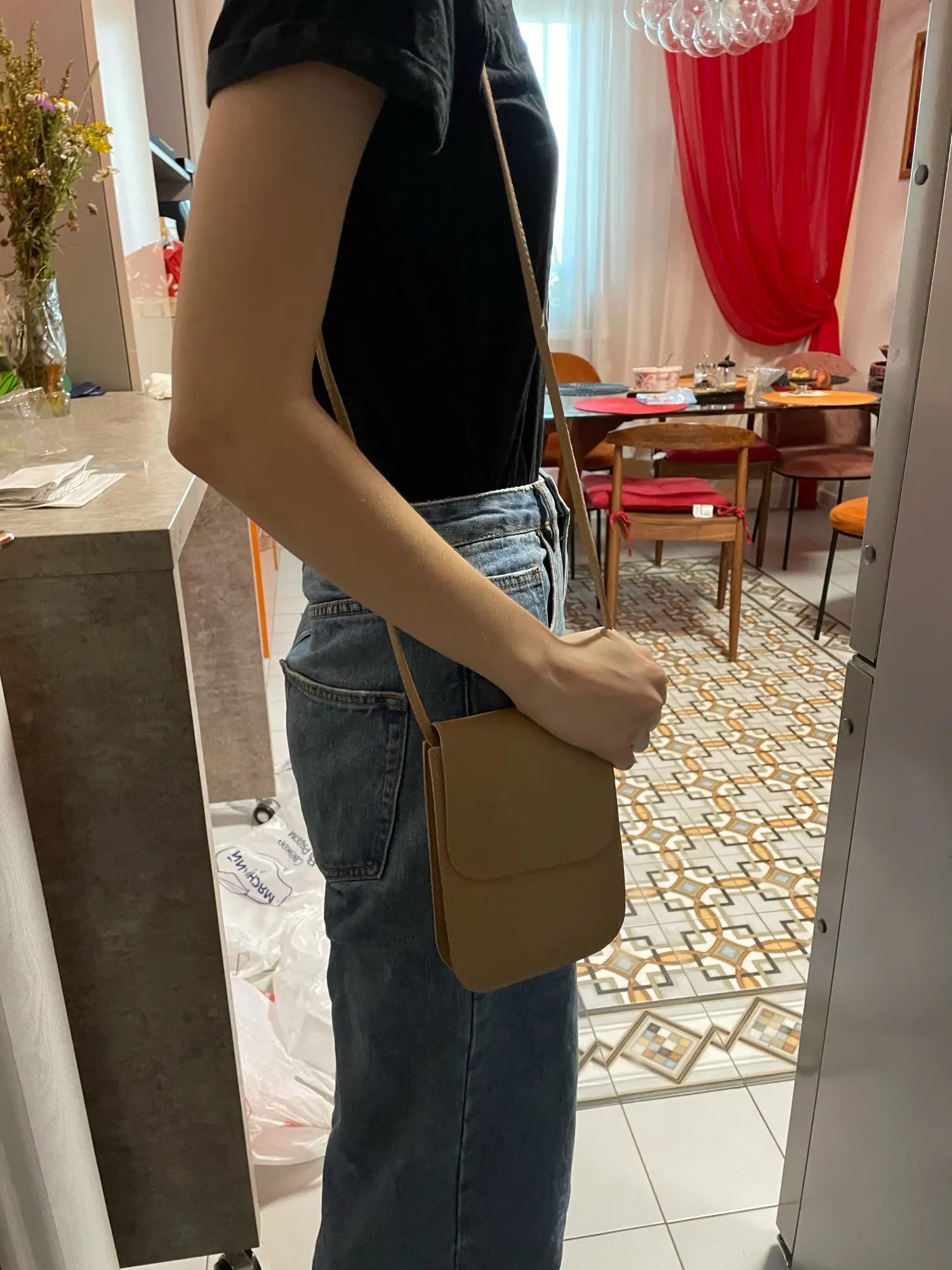 Ожидала я от этой сумки большего, за 260 рублей ещё норм, но не больше. Сумочка мягкая, по фотографии товара так и не скажешь. Я бы не стала снижать до трех звёзд, если бы ни вот эти прорези для лямки - дырка, а самой сумке верёвочка. Вот и думай как это приделать (пришить, сделать узелком, как у меня на фото). У сумки присутствует запах. Телефон honor 9x влезает только-только, но я бы его не стала туда класть - лямка долго не выдержит.