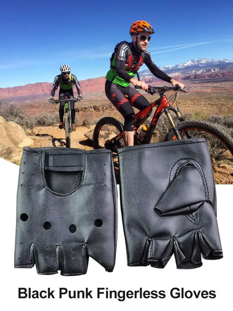 Women Men PU Leather Fingerless GlovesMotor Driving Punk Gloves