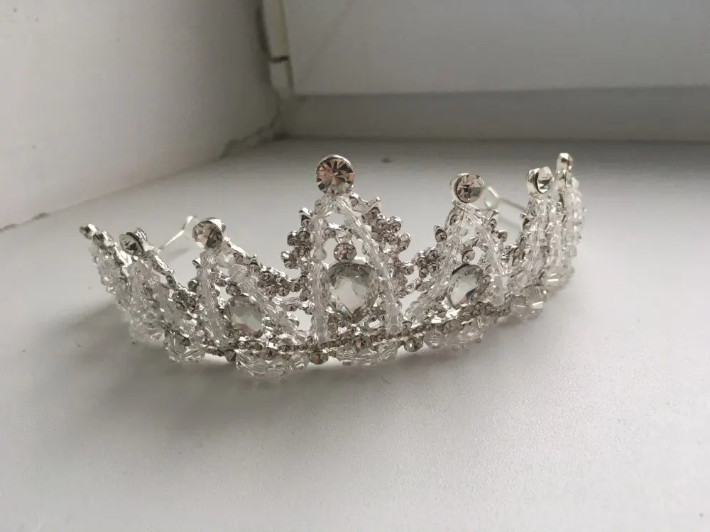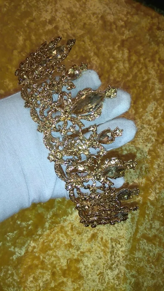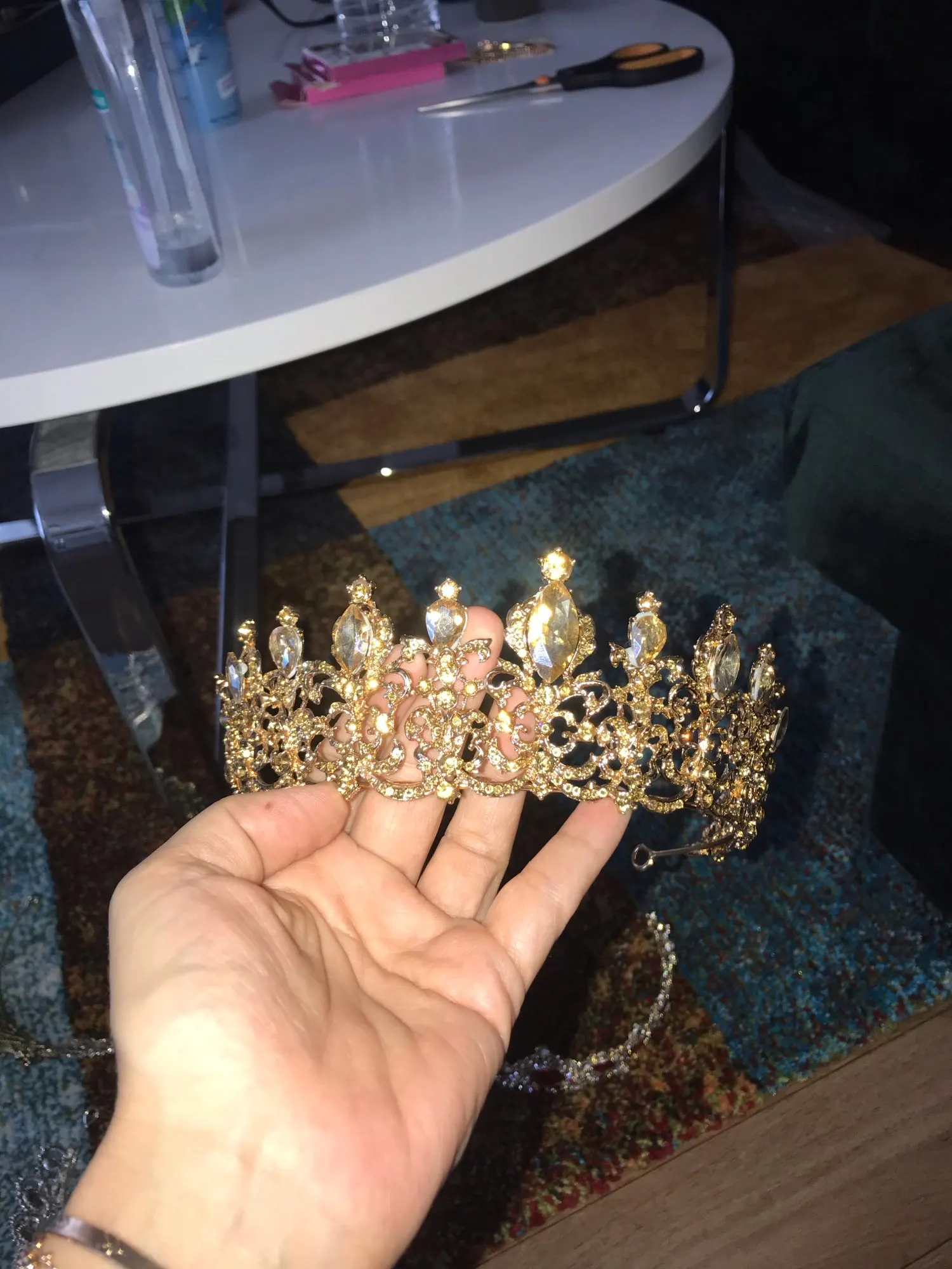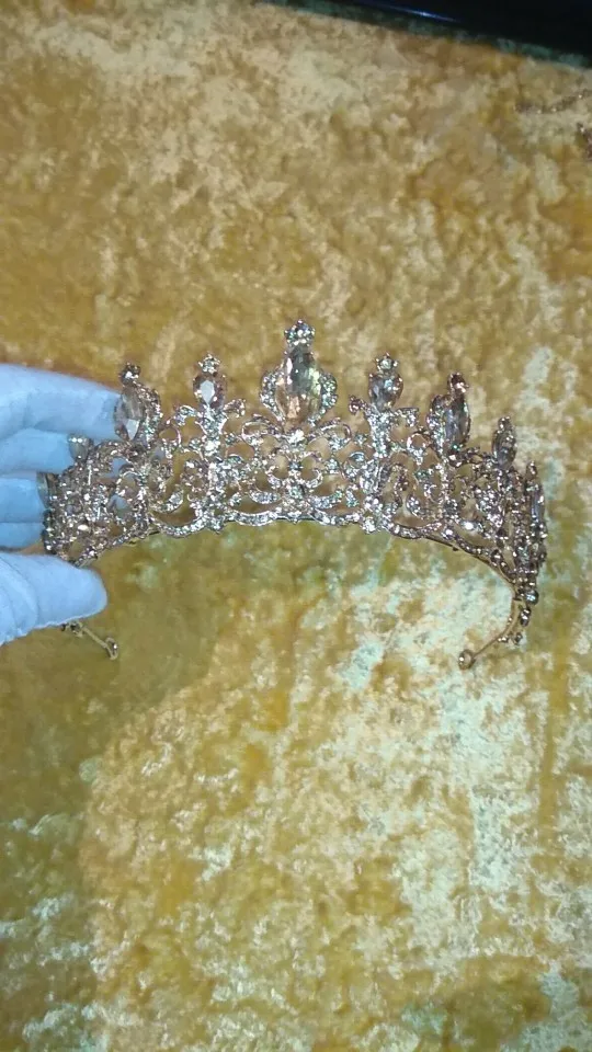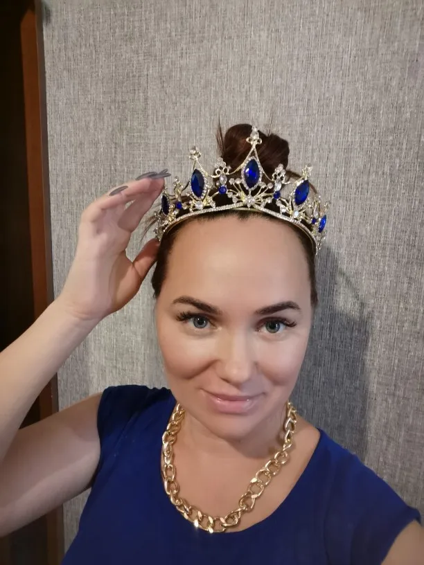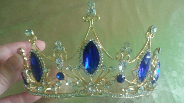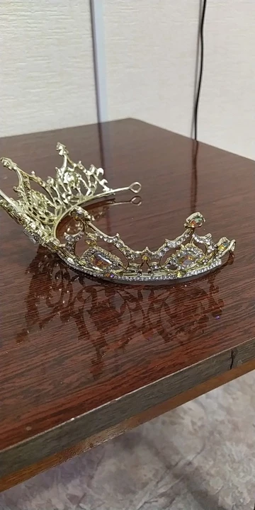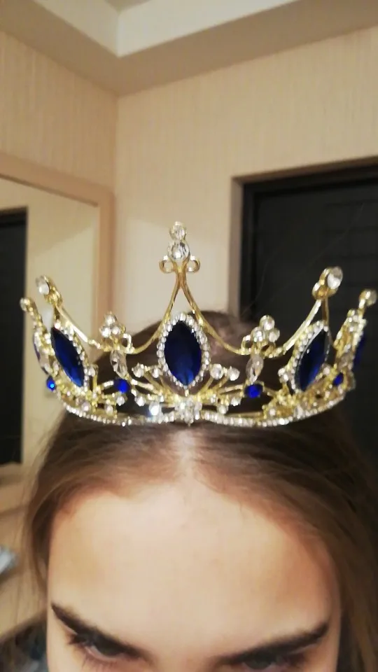 Шикарная корона, металлическая, даже лучше, чем на фото. На голове держится крепко, камни и стразы надежно приклеены