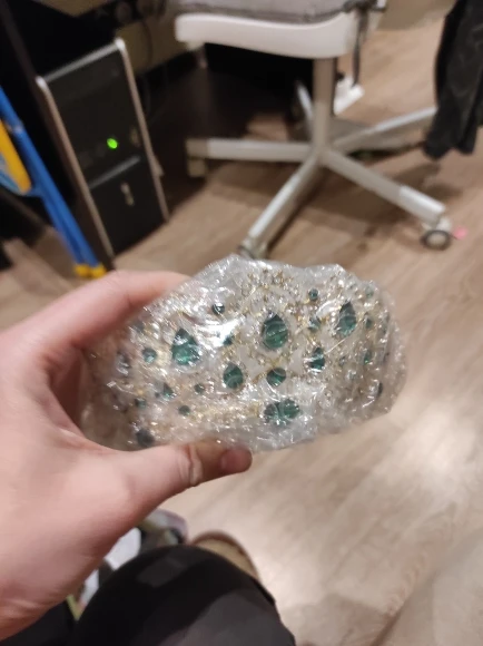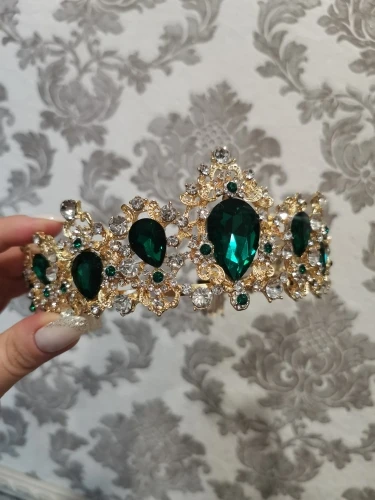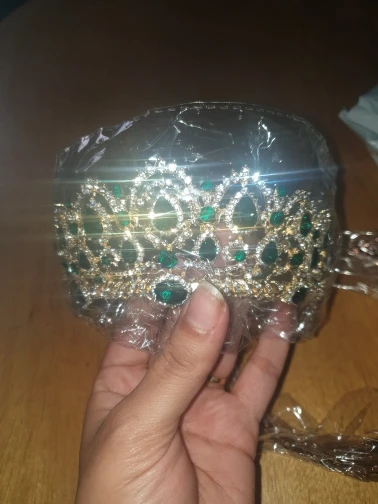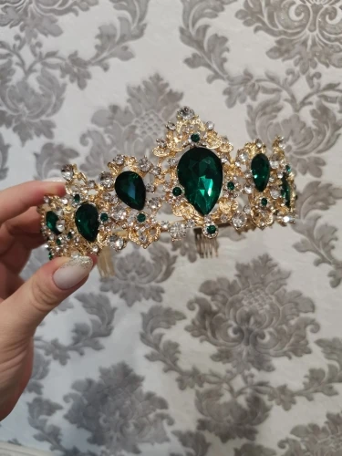 Корона пришла,без повреждений упакована отлично,однако поставила 4 звёзды потому , что нет одного стразика ,на фотографии видно ,я показала ,где нет зелёного стразика