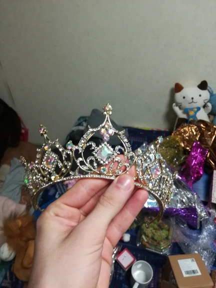 Корона просто космос, идеальна во всех ракурсах, подошла по размеру после того как немного разогнула, на детскую голову самое то. Выглядит дорого и качество отличное. Упакована хорошо, прошла без малейших повреждений, рекомендую.