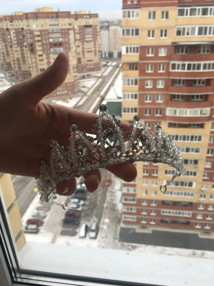 Диадема для фотосессии Крепкая, камни и бисер - все на месте, чуточек жмет, посмотрим как будет при движении лежать на голове до Красноярска дошла посылка за 23 дня