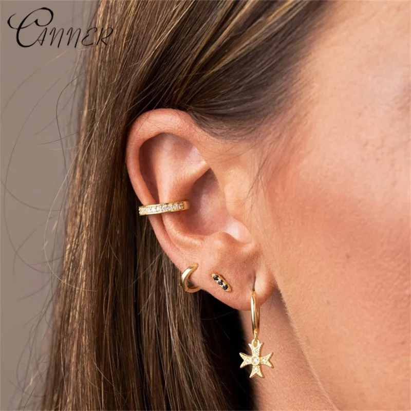 CANNER минималистичные толстые круглые бриллиантовые ювелирные изделия, корейские маленькие петлевые серьги, простые женские серебряные серьги