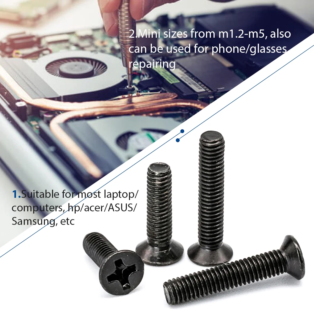 55-110 шт плоский винт для ноутбука M1.2 M1.4 M1.6 M1.7 M2 M2.5 M3 M4 M5 углеродистая сталь Phillips компьютерный винт для Lenovo Samsung