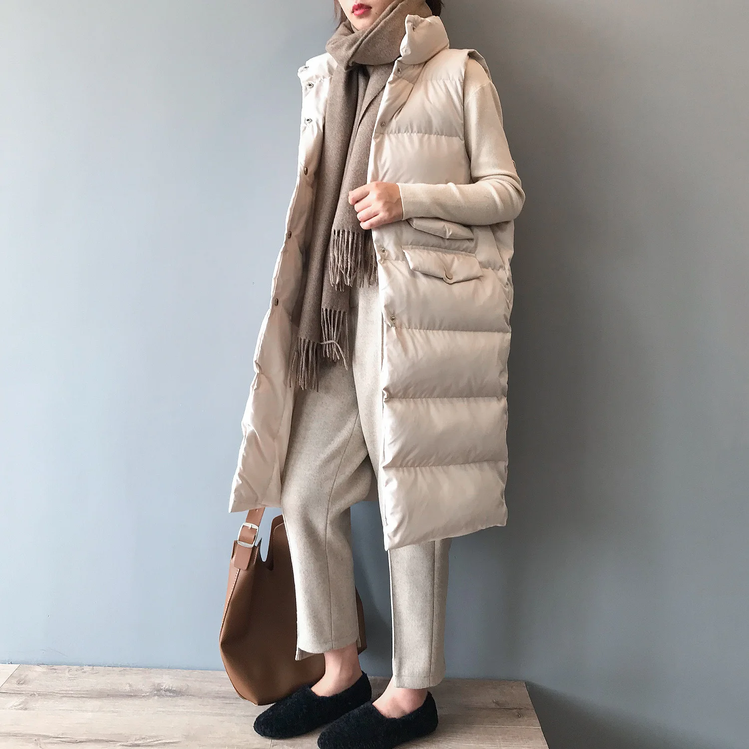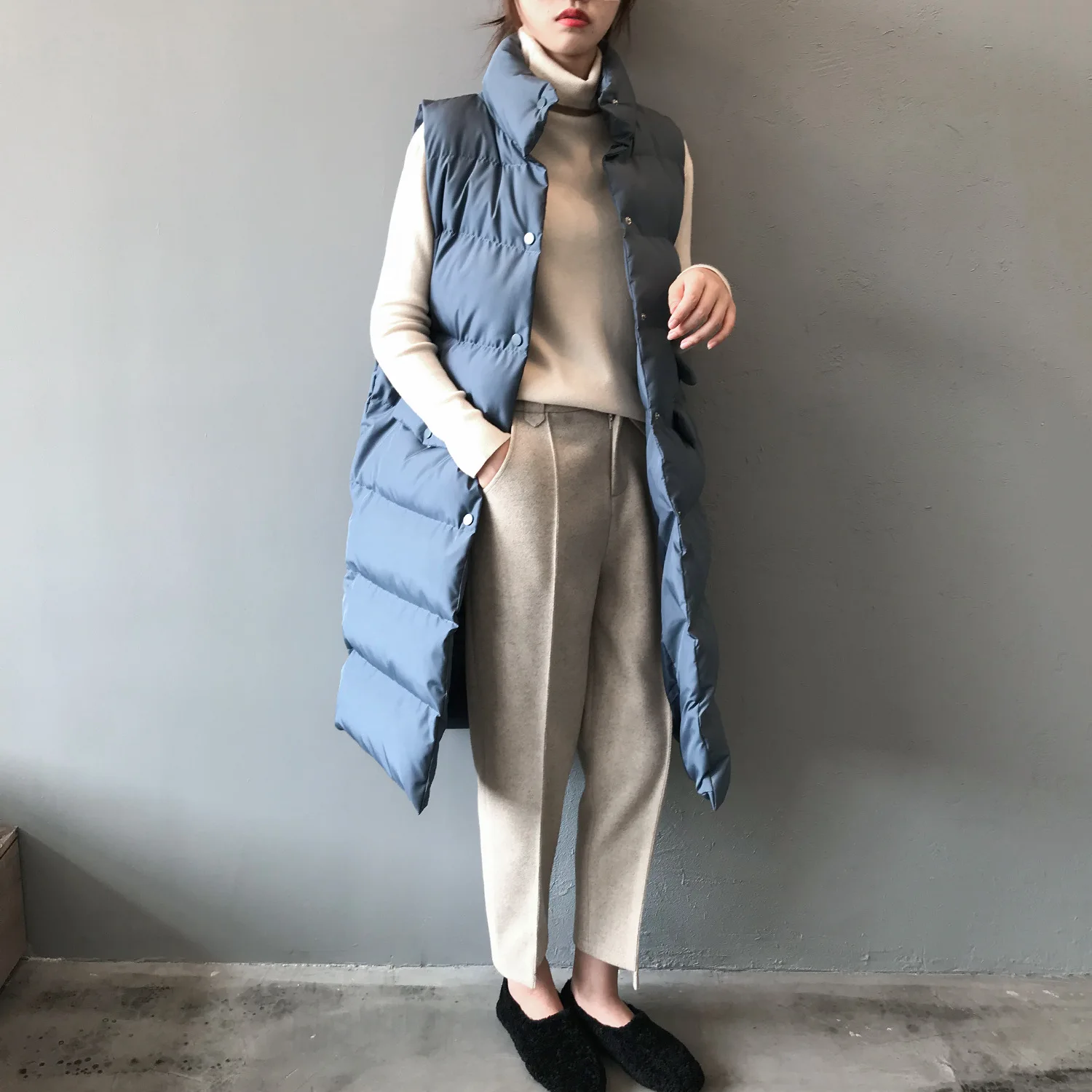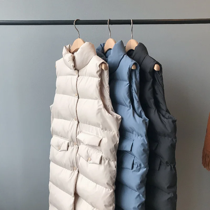 2019 женский зимний жилет пальто с воротником-стойкой Женский Длинный жилет Теплый Женский Топ жилет Chaleco Mujer Gilet Casaco Feminino