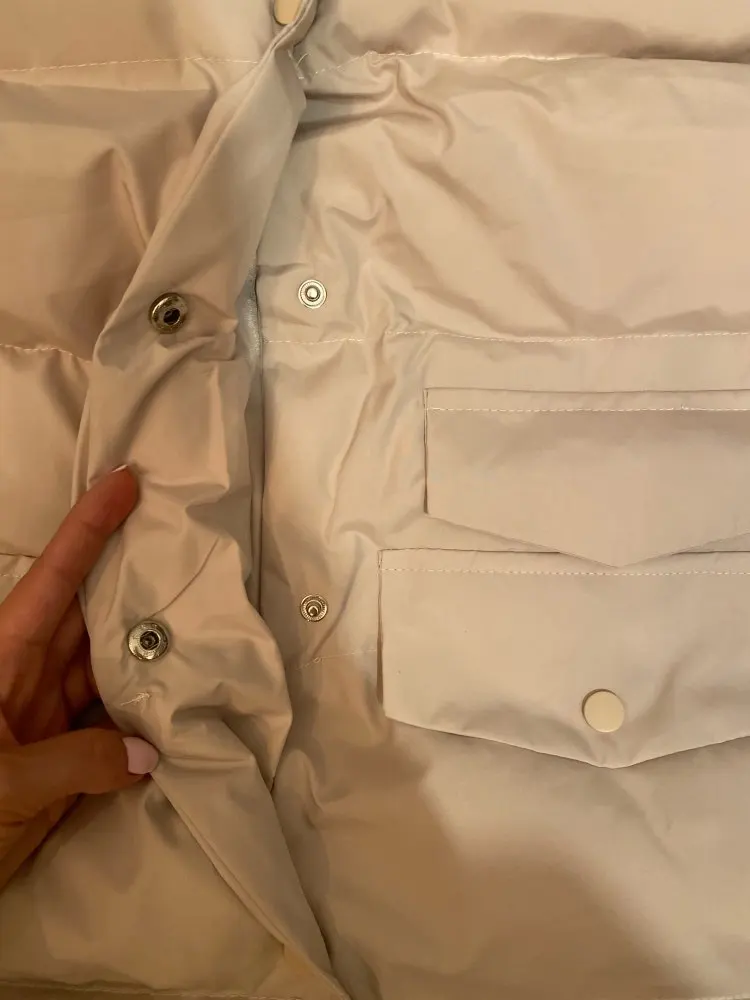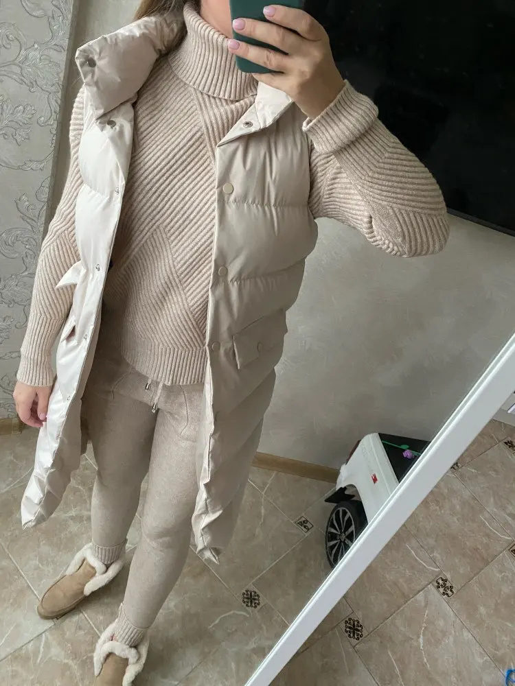 Очень крутая жилетка! толстенькая! цвет молочный! доставка мега быстрая!