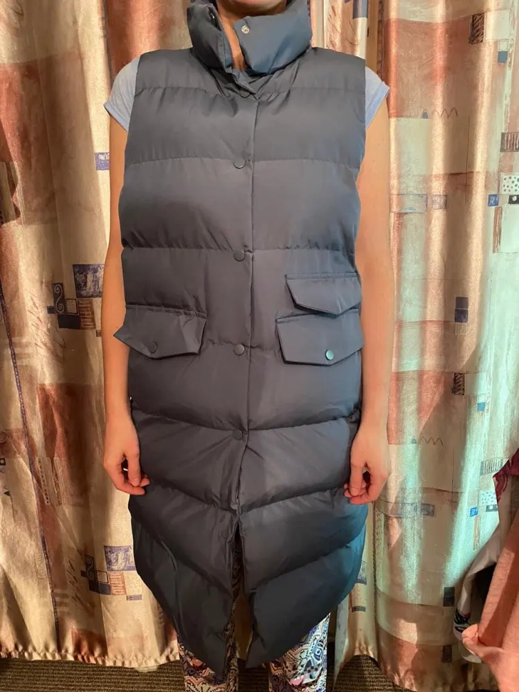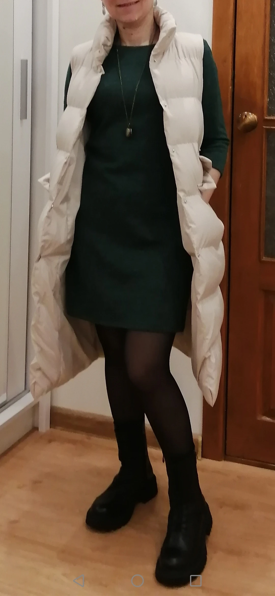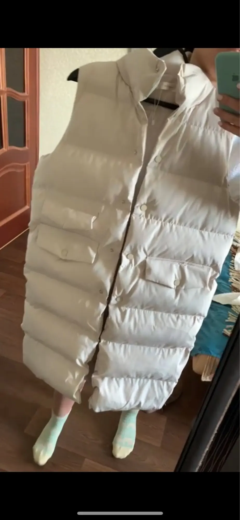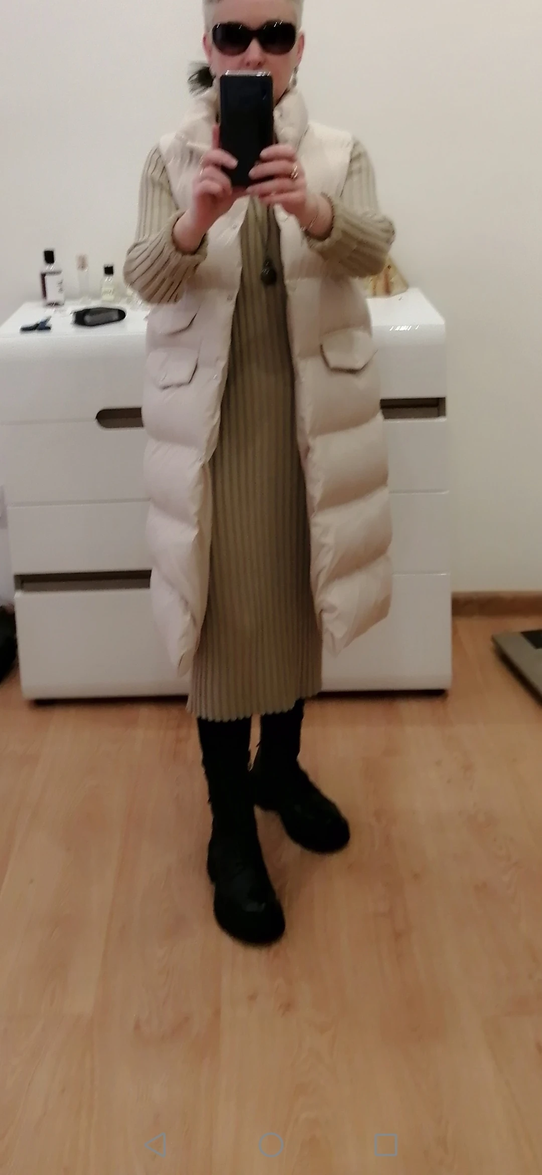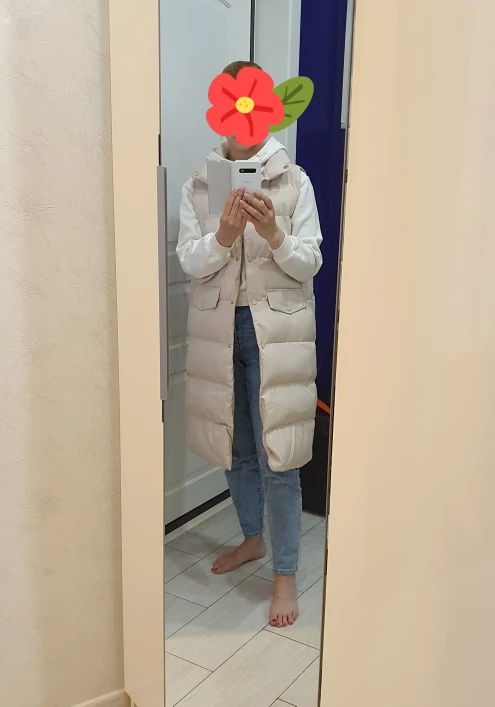 Супер стильный, теплый пуховик-жилетка! Я в полном восторге! Даже в +-5 градусов в нем будет тепло. Только чтобы руки не мёрзли, нужно надевать свитер потеплее. Супер! И заказ пришёл очень быстро (где-то до двух недель). Мой рост 158см.