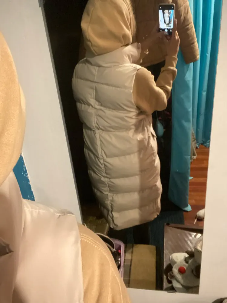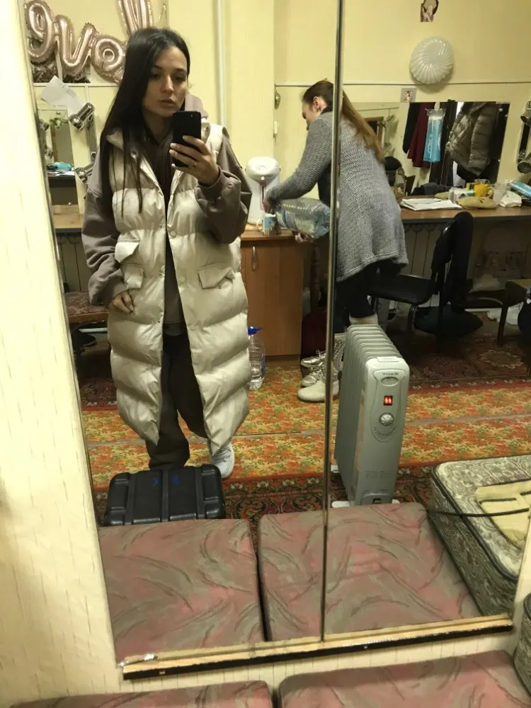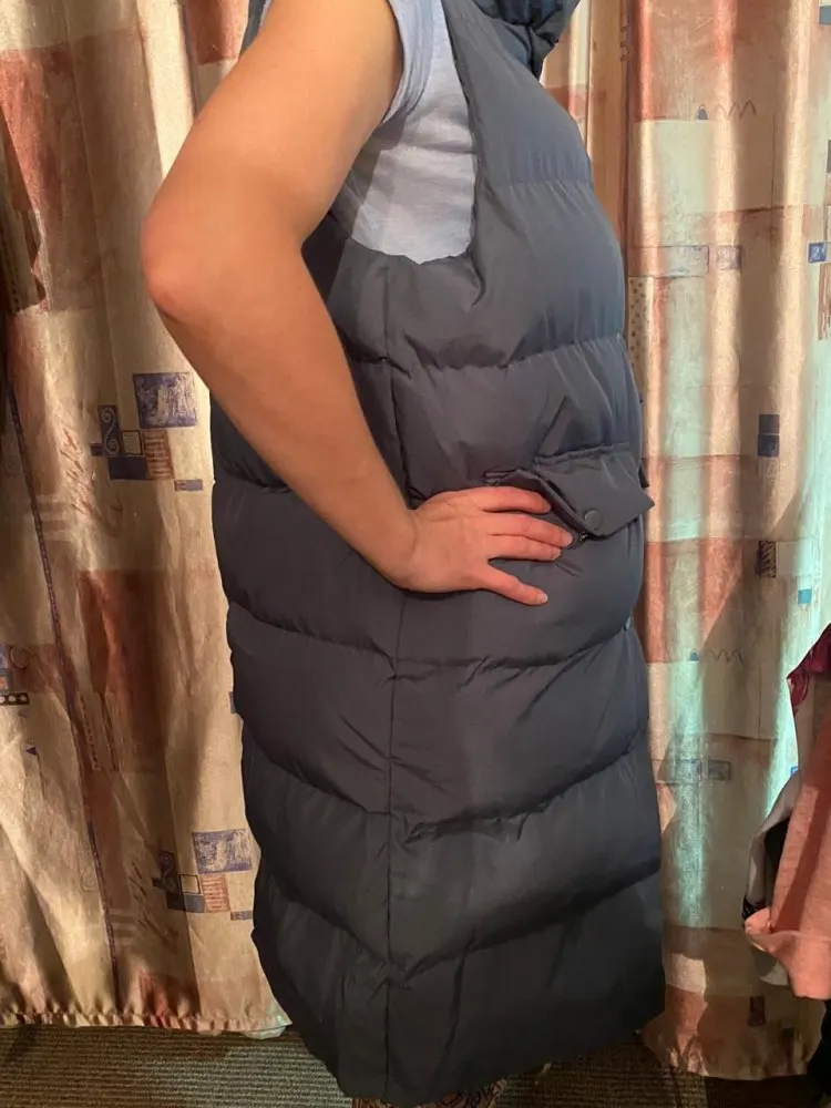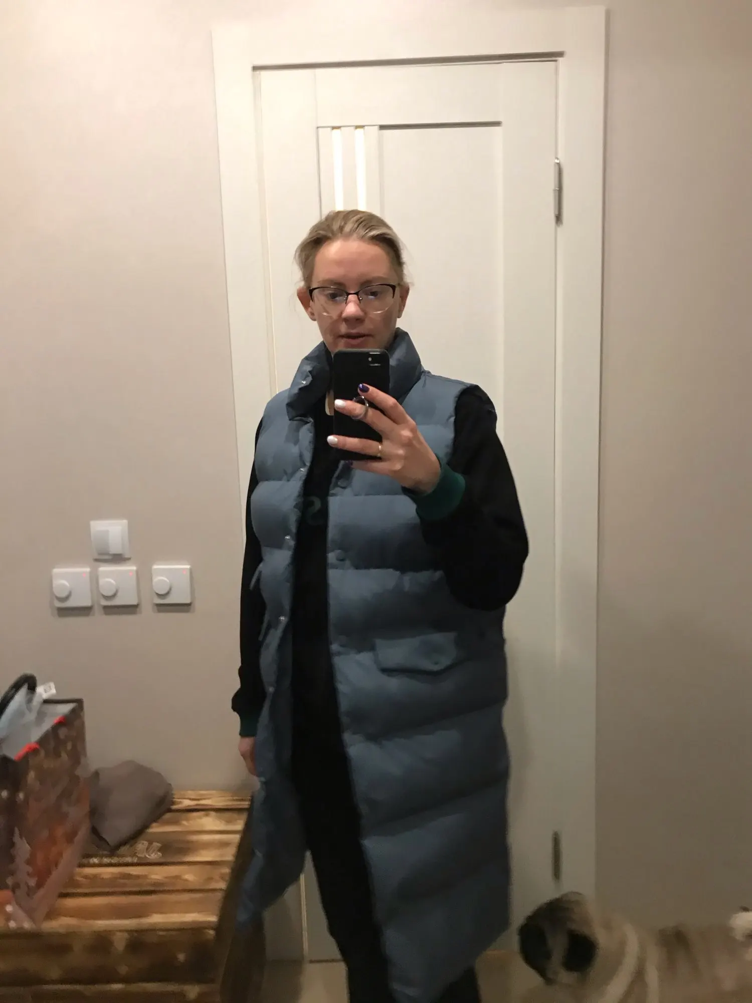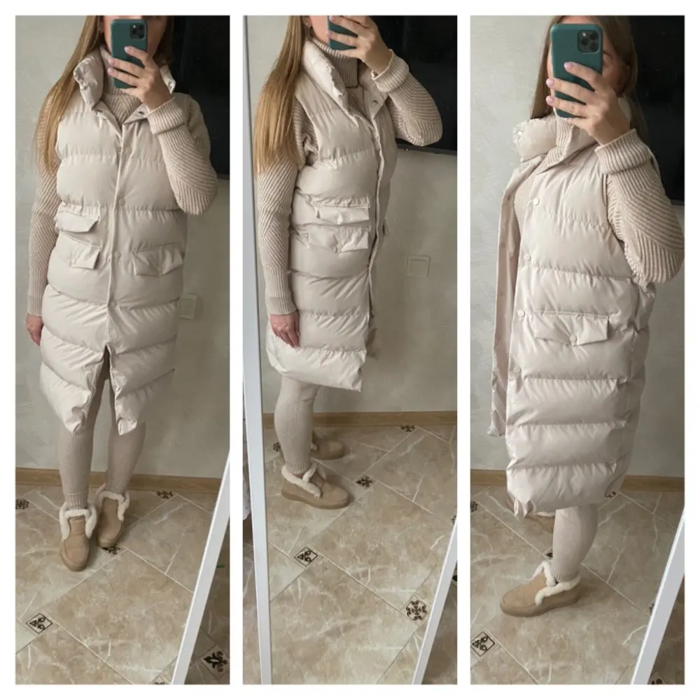Супер стильный, теплый пуховик-жилетка! Я в полном восторге! Даже в +-5 градусов в нем будет тепло. Только чтобы руки не мёрзли, нужно надевать свитер потеплее. Супер! И заказ пришёл очень быстро (где-то до двух недель). Мой рост 158см.