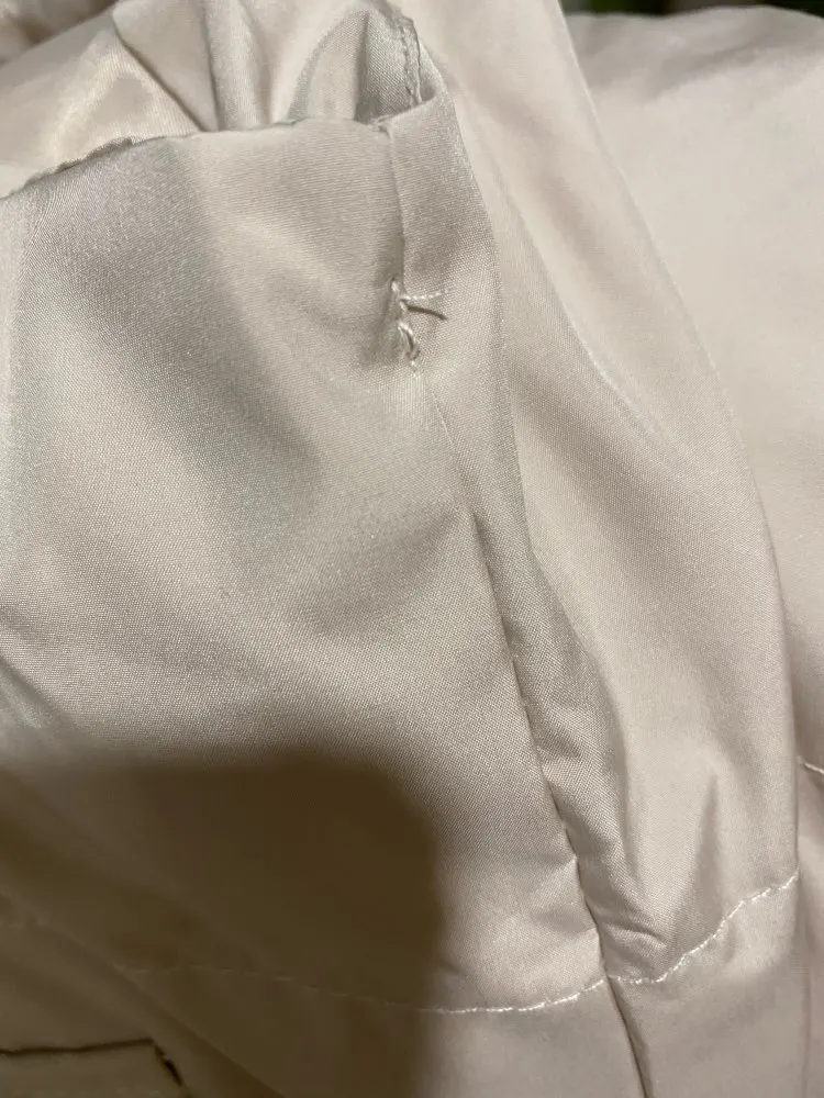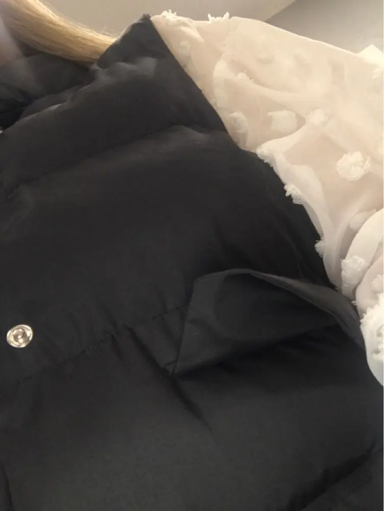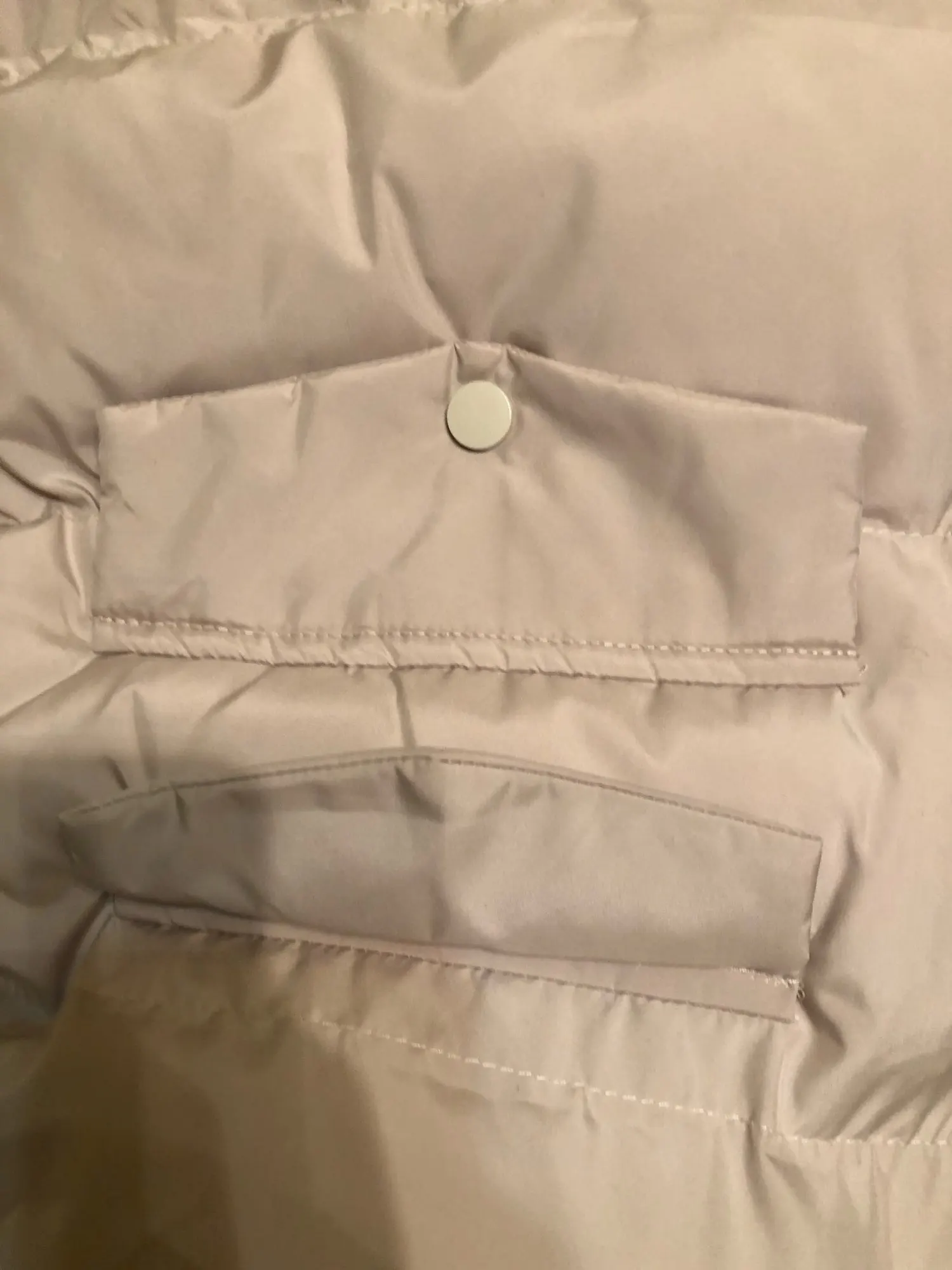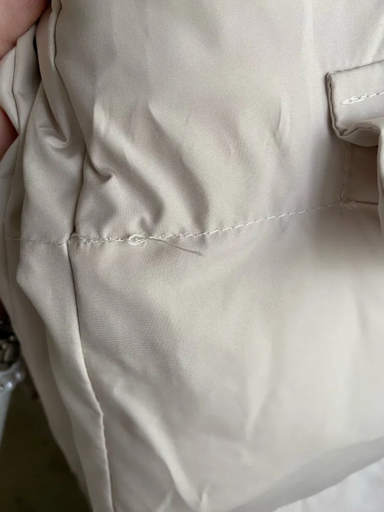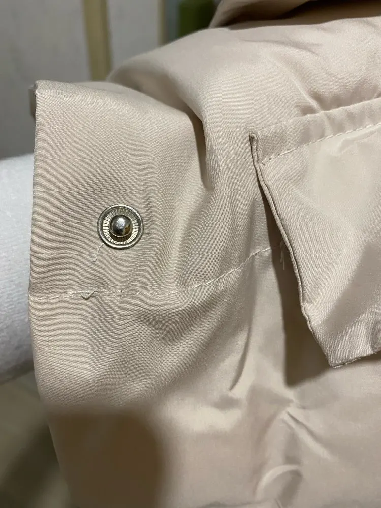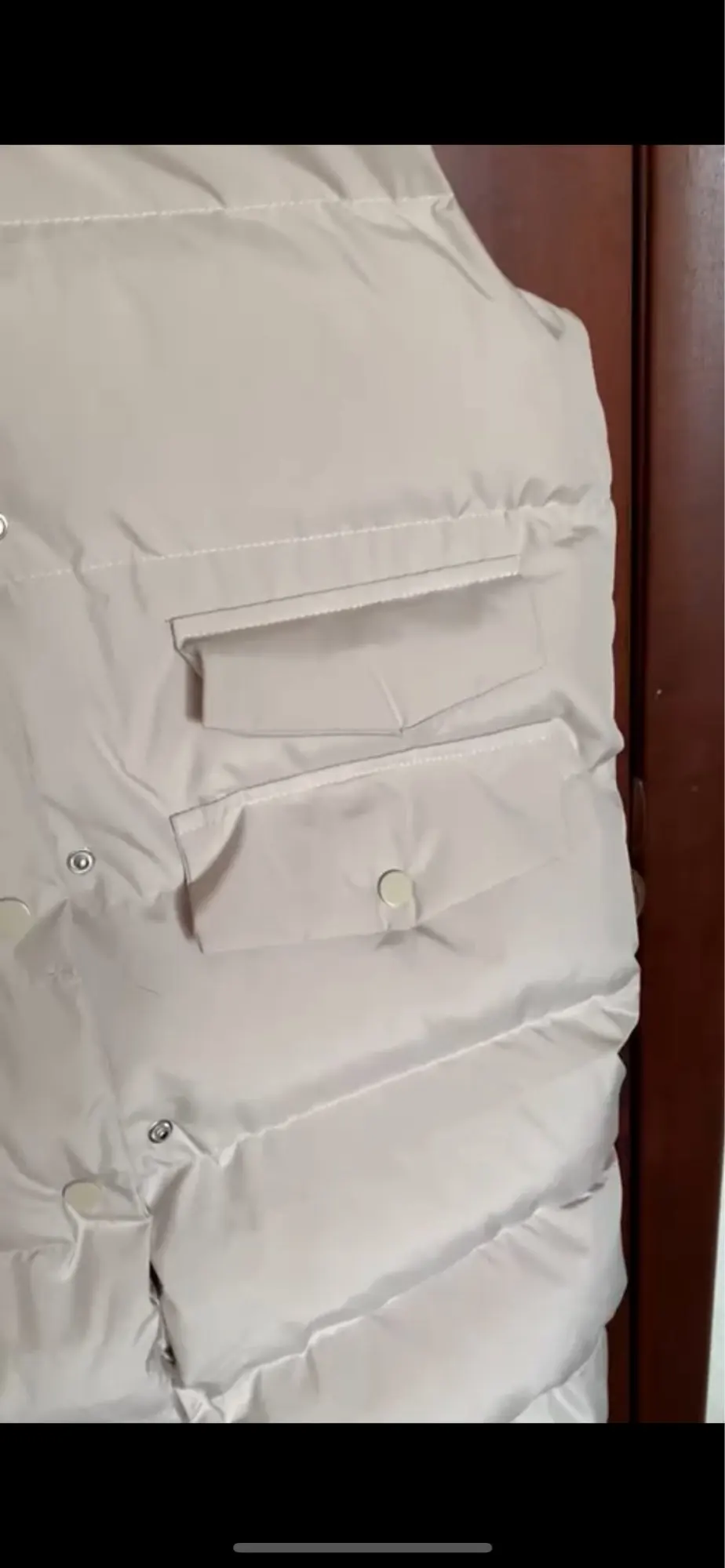 Очень ждала эту жилетку, а по факту смешанные чувства. Строчки ровные, но какие то хлипкие ( внизу действительно не хватает кнопки - пришью сама. Цвет очень красивый, синтепона много, но при этом лёгкая. По расту тоже хорошо. Карманы зашиты, нужно отпарывать. В целом очень хорошо