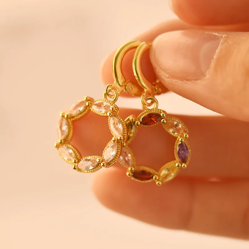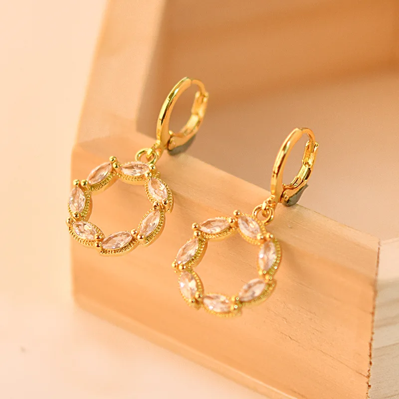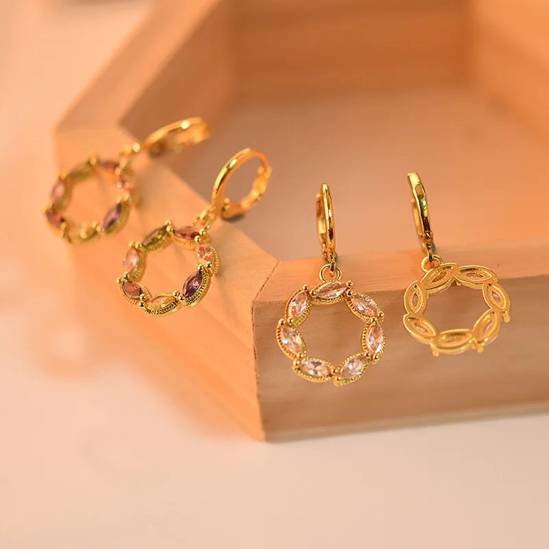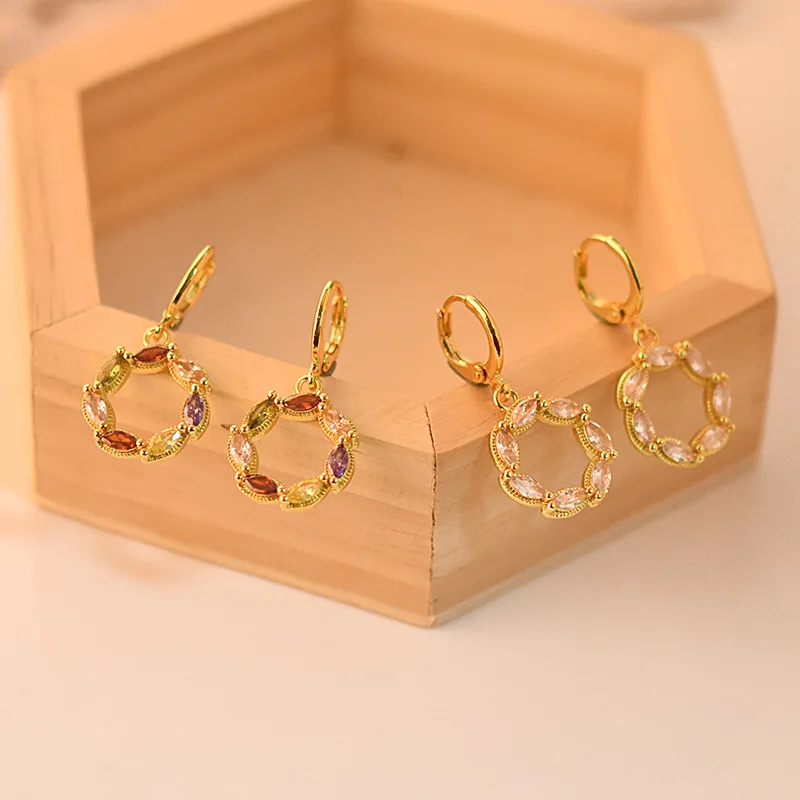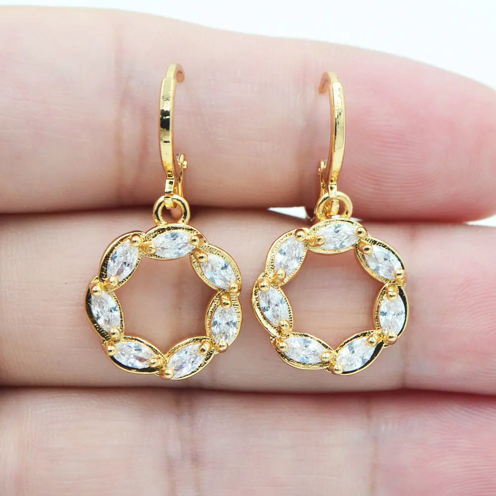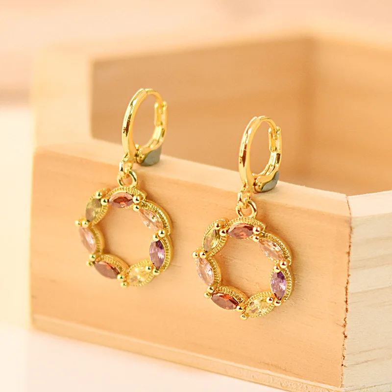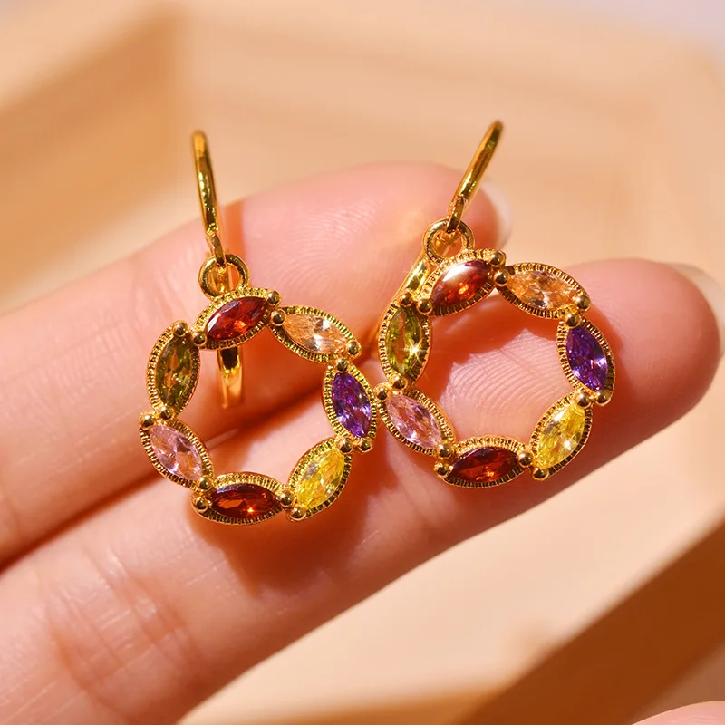 Женские серьги-кольца Foydjew, с радужным белым кристаллом и цирконом, золотого цвета 18 К, ювелирные украшения для девочек, аксессуары для ушей
