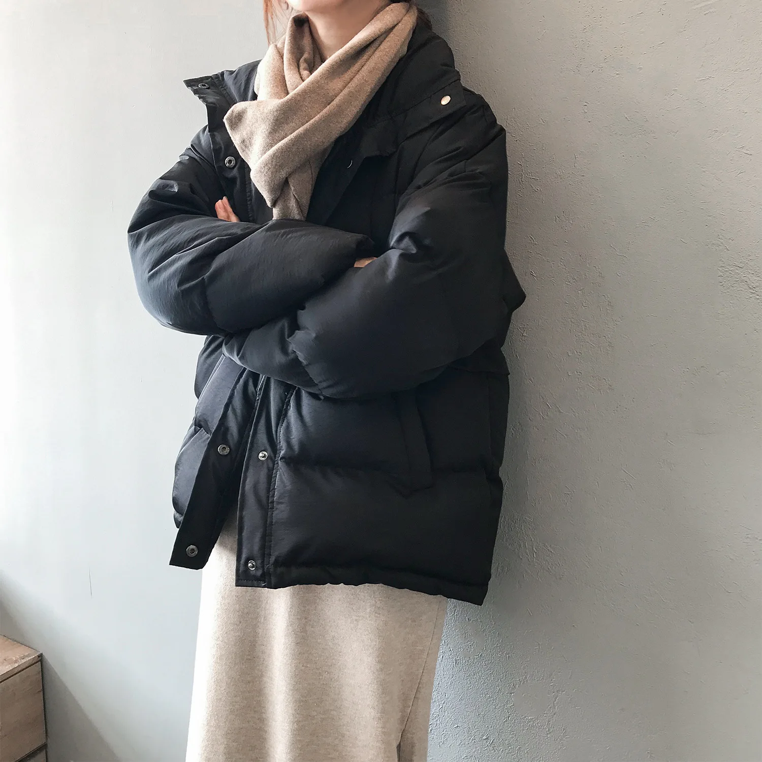 Женское пальто с воротником-стойкой, зимнее, плотное, свободное, 2021