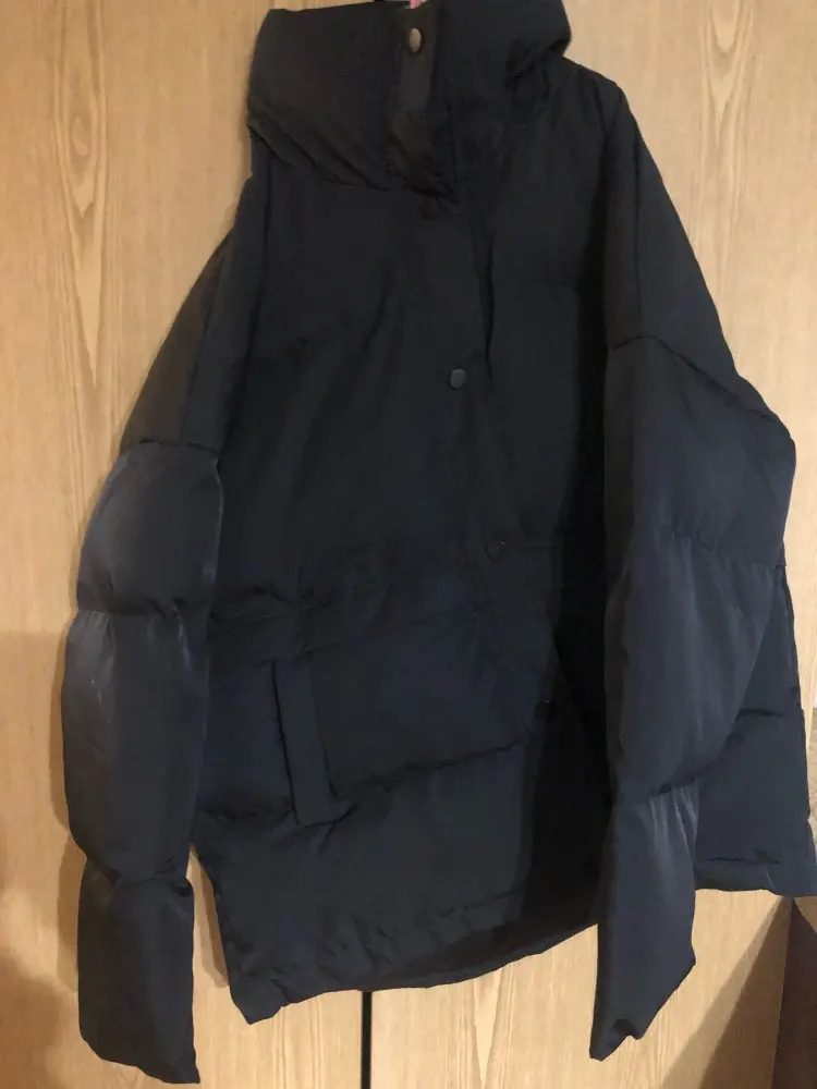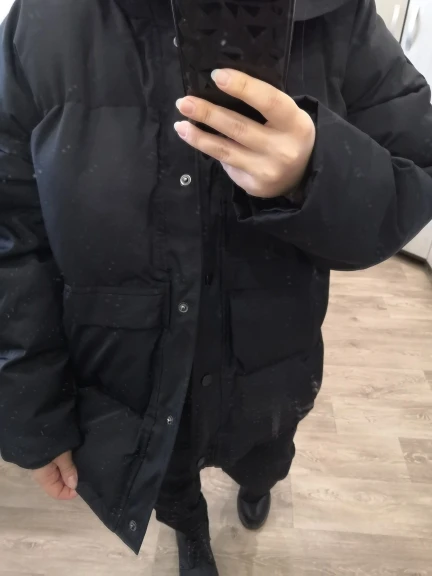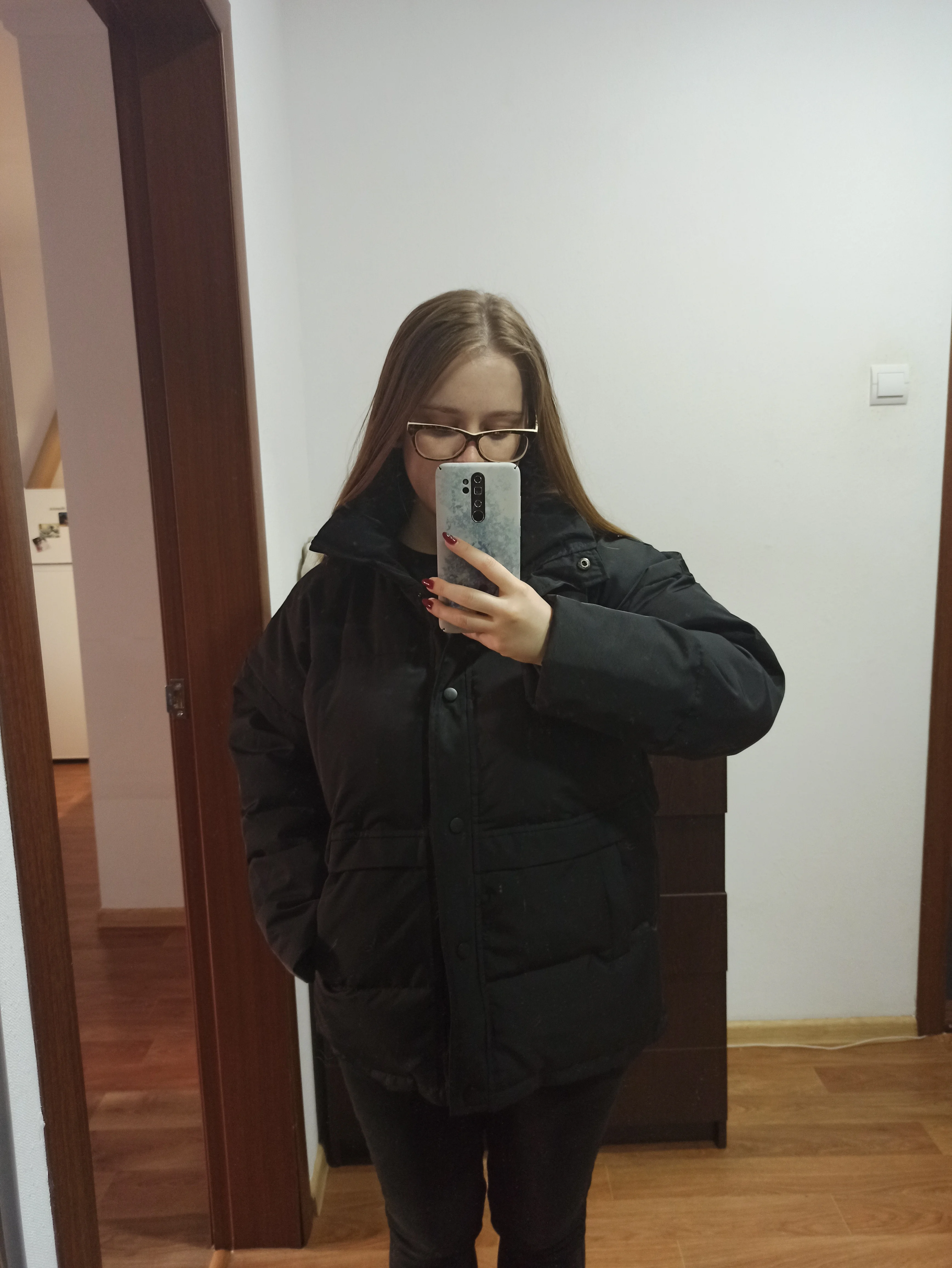 Ну, куртка действительно неоднозначная. У нее хороший фасон, качественная и приятная ткань, лаконичная фурнитура в виде клепок, есть инструкция по уходу, красивый цвет. Продавец сказал, можно стирать в машине. На свой росс. М (иногда и S подходит, иногда L), спросив совета продавца, взяла размер L, т.к. приходится выбирать куртку на время беременности. Если возьмёте свой привычный размер, будет в самый раз, ибо она по умолчанию оверсайз. Под нее спокойно влезут свитер или худи. Кривых, разных по исполнению швов, запаха не обнаружила. Теперь к минусам. Во-первых, нет молнии, что прям странно. Для куртки, не предполагающей молнию, надлежит делать больший зАпах, иначе действительно будет продувать. Не знаю, можно ли решить эту проблему, например, вшиванием молнии. Во-вторых, наполнитель распределен неравномерно, что видно на просвет. Даже предположить боюсь, что с ней будет после стирки. В общем не весть какая она теплая, зато объемная. В целом заказом довольна. Доставка меньше месяца.
