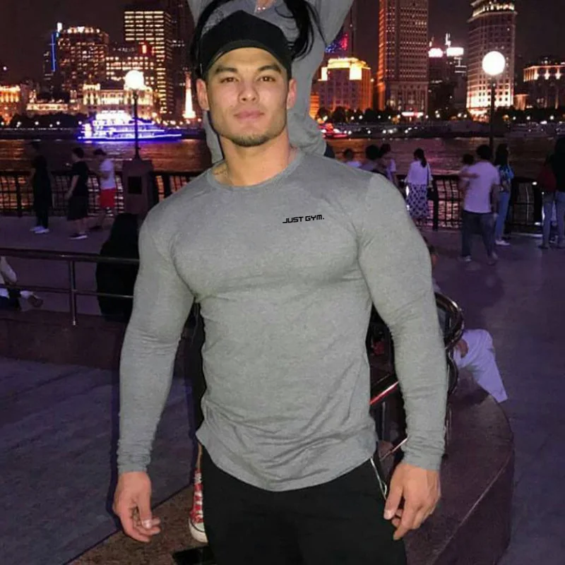 Футболка Мужская дышащая с длинным рукавом, Модный брендовый Топ для тренировок и бодибилдинга, Повседневная однотонная, для фитнеса