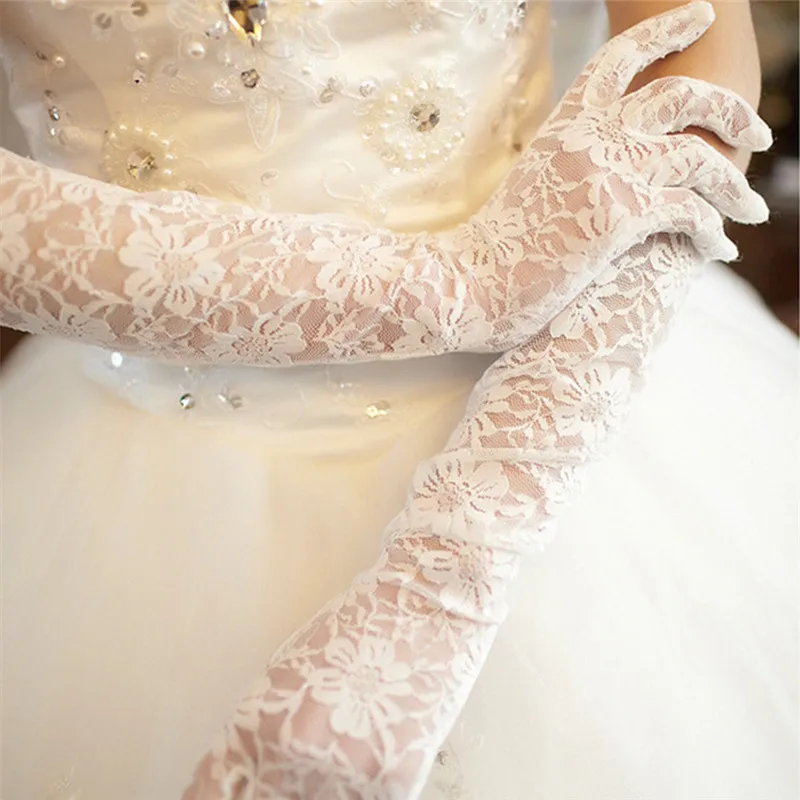 Свадебные перчатки для женщин и девушек, Длинные кружевные перчатки с закрытыми пальцами, элегантные свадебные аксессуары, Белыйцвет слоновой кости, 1 пара