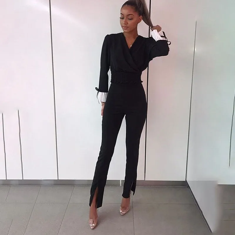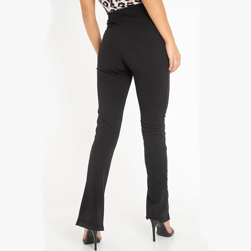 Женские модные однотонные длинные брюки-карандаш, женские повседневные черные брюки с высокой талией и разрезами, облегающие колготки, зима 2019, PA92