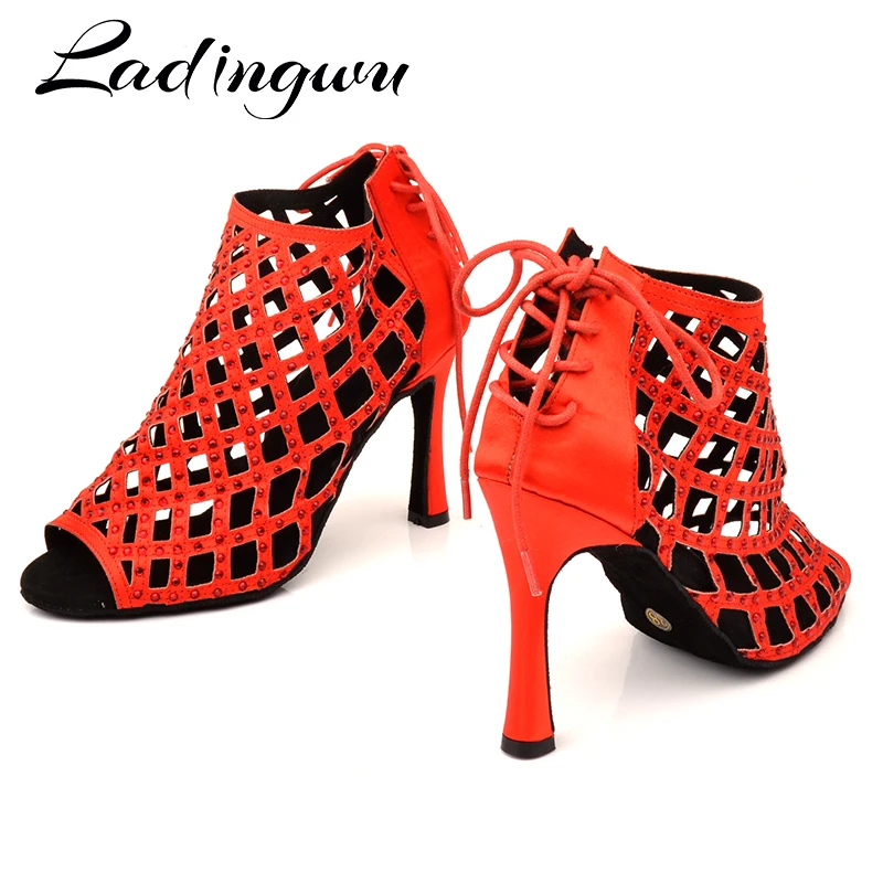 Женские туфли для латиноамериканских танцев Ladingwu, красные туфли для бальных танцев, обувь для латиноамериканских танцев на каблуке 10 см