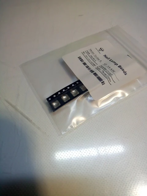 В Беларусь пришли меньше, чем за месяц. Заменил в неудачной лампе для сушки ногтей(плохо, медленно сушила) так теперь сушит гораздо быстрее, аж печет, придется даже отпаять парочку светодиодов, чтоб не обжечь ногтевую пластину. Запитывать можно напрямую от одной 18650 банки, можно через USB с последовательно включенными 2-3 диодами или стабилитронами, мощность соответствует двум Ваттам