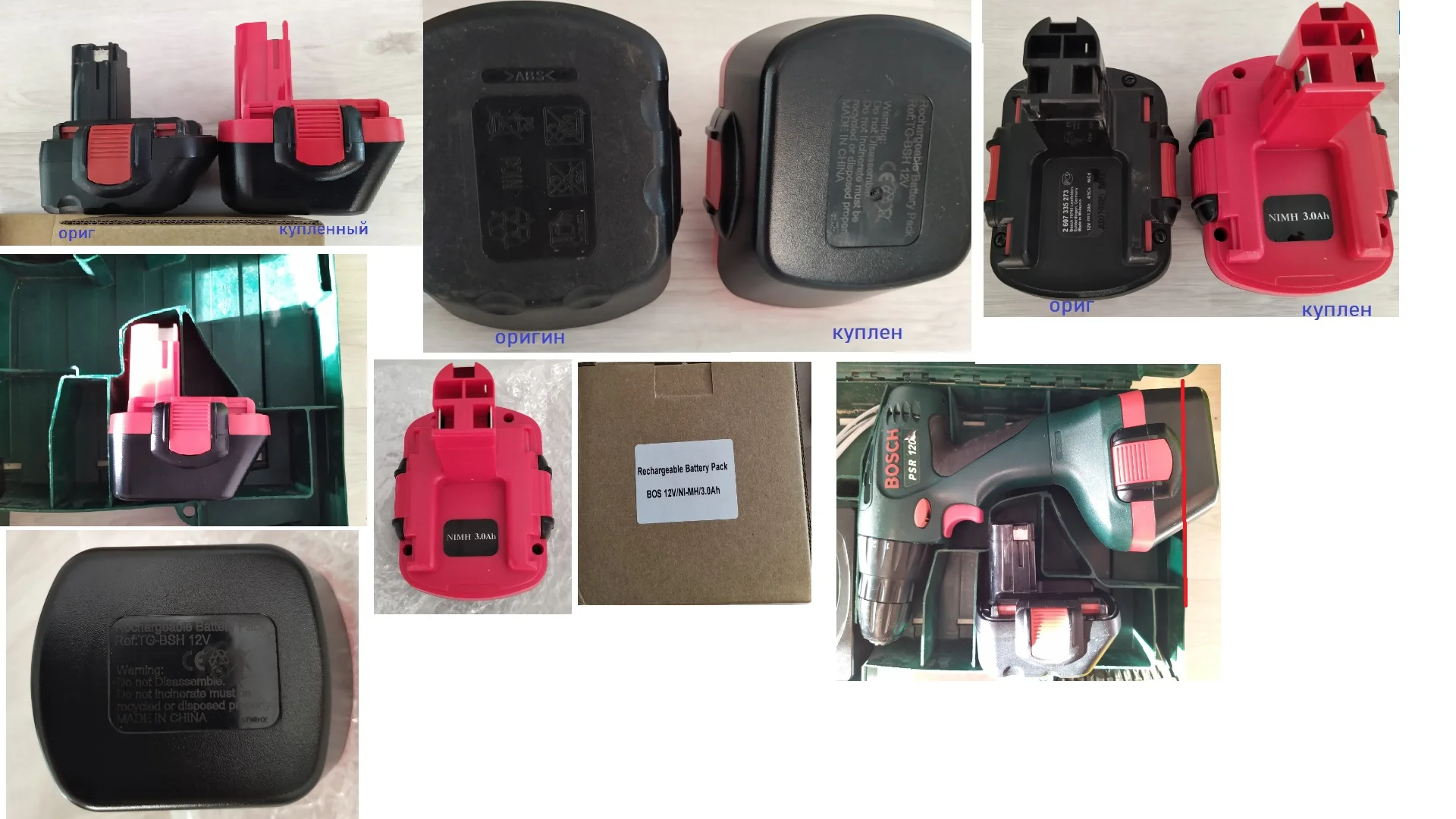 Аккумулятор шёл по России из подмосковья. Сразу заряжен. Крутит как надо. Держит заряд хорошо. Внешне почти как оригинальный. Только чуть выше. Из-за чего в стандартный кейс шуруповёрта в отдел где запаска входит хорошо, а для того, что бы держать на шуруповёрте нужно немножко подточить стеночки внутри кейса (у меня уголок жесткости, его можно убрать и тогда всё влезет). Замыкается крепко на шуруповёрте, держится хорошо. Дешевле выходит чем на всех инструментах или прочих внутренних площадках. привезут или домой или на почту.